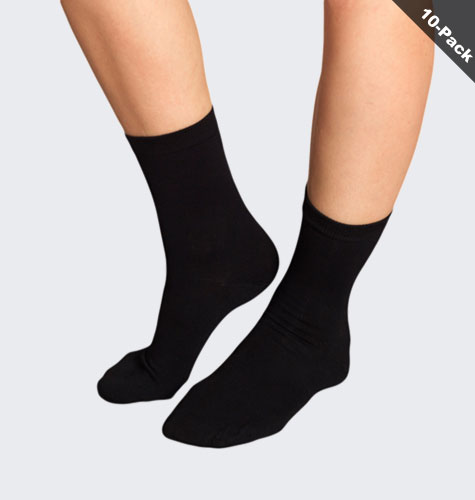 10-pack! Svart bambustrumpa med 80 % bambufiber, 15 % polyester och 5 % elastan. Extra förstärkt mot slitage i såväl häl som tåspets.