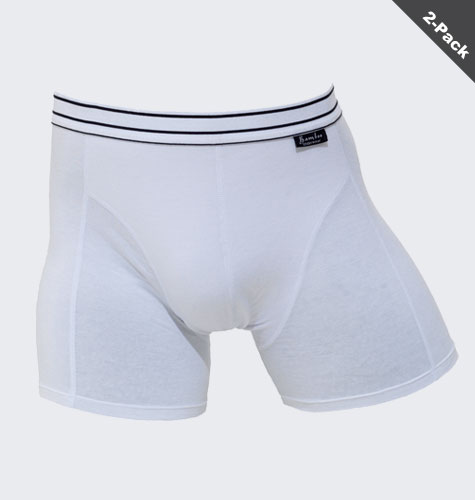 Vita boxershorts i bambu för män i 95 % bambufiber och 5 % elastan. Extra förstärkt mot slitage i grenen.