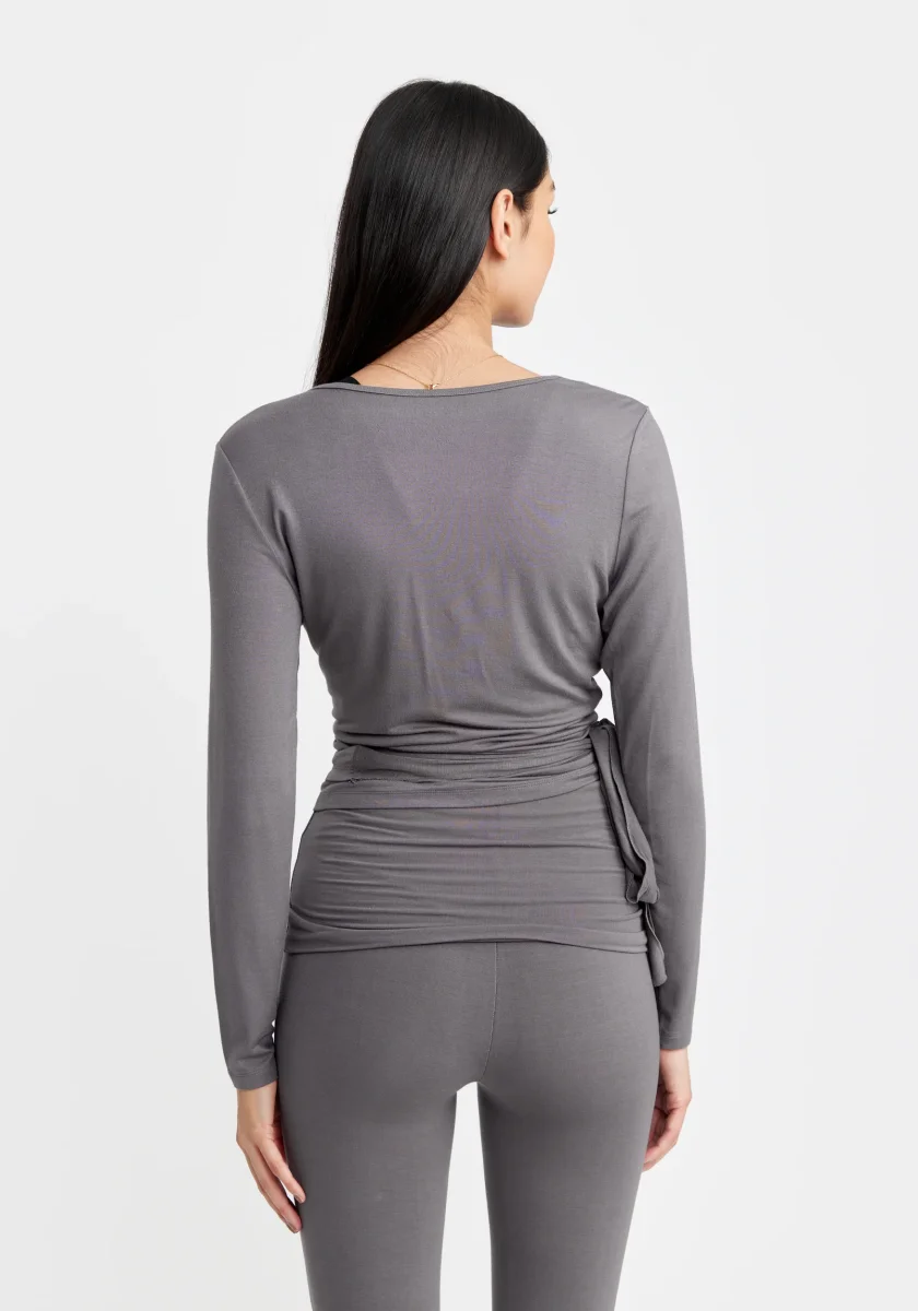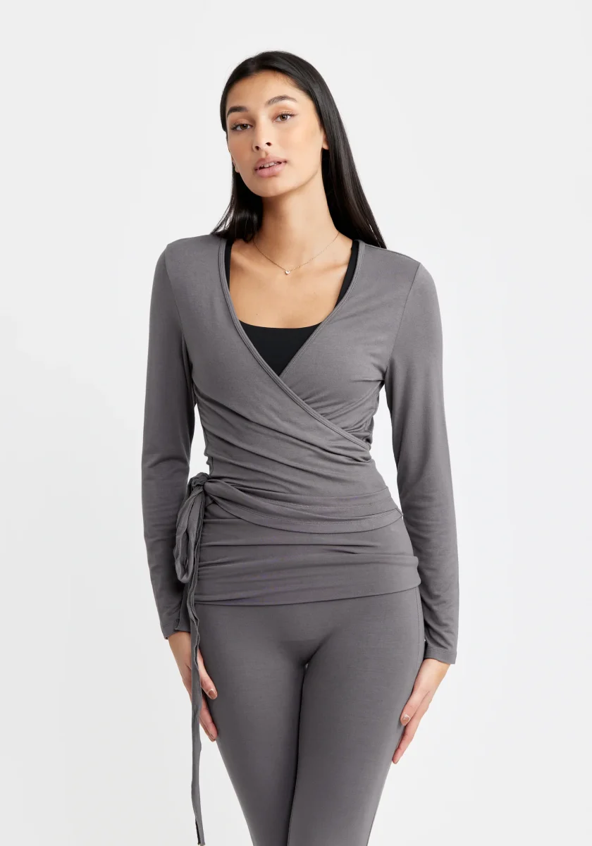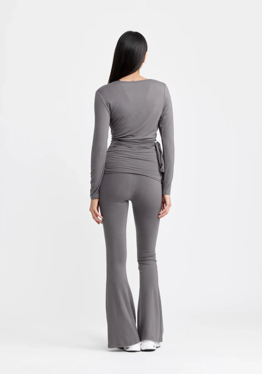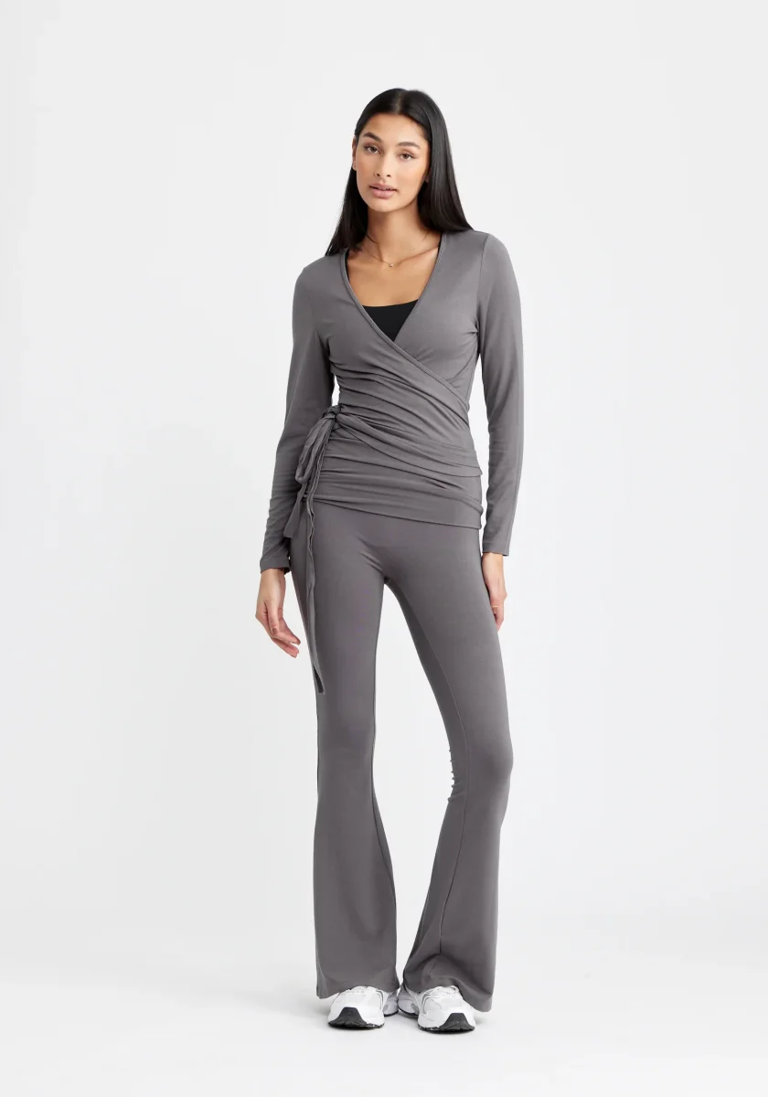 Ballet Wrap Top Long Sleeve Grayisch passar fint ihop med Folding Waistband Flare Pants.