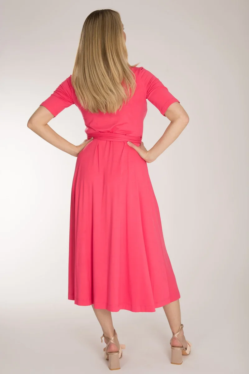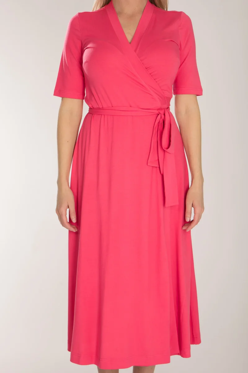 För att du skall kunna hitta din perfekta klännings-matchning kommer den här trikåklänningen i en vadlång och en knälång variant.