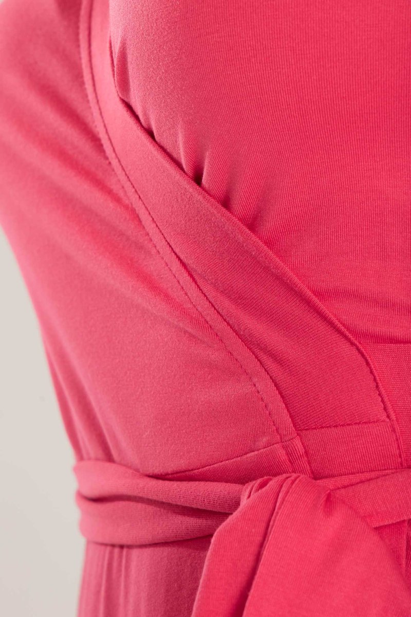 Omlottklänningar har en särskild plats i våra hjärtan, då de kombinerar smickrande siluetter med överlägsen komfort. Här är vår vadlånga modell, sydd i stretchig trikå med knyt i midjan och vidd i kjolen. Bestie wrap dress återkommer i vår kollektion och är en av våra mest omtyckta klänningar.