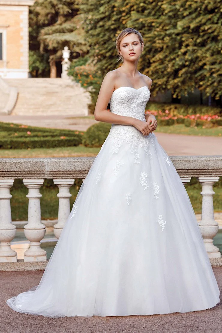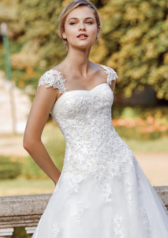Brudklännning Sincerity 4416 med löstagbara breda axelband second hand / återbruk