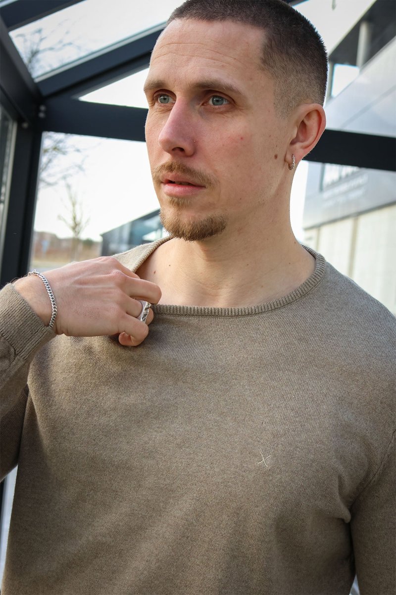 - Lättstickad tröja med rund hals och långa ärmar.