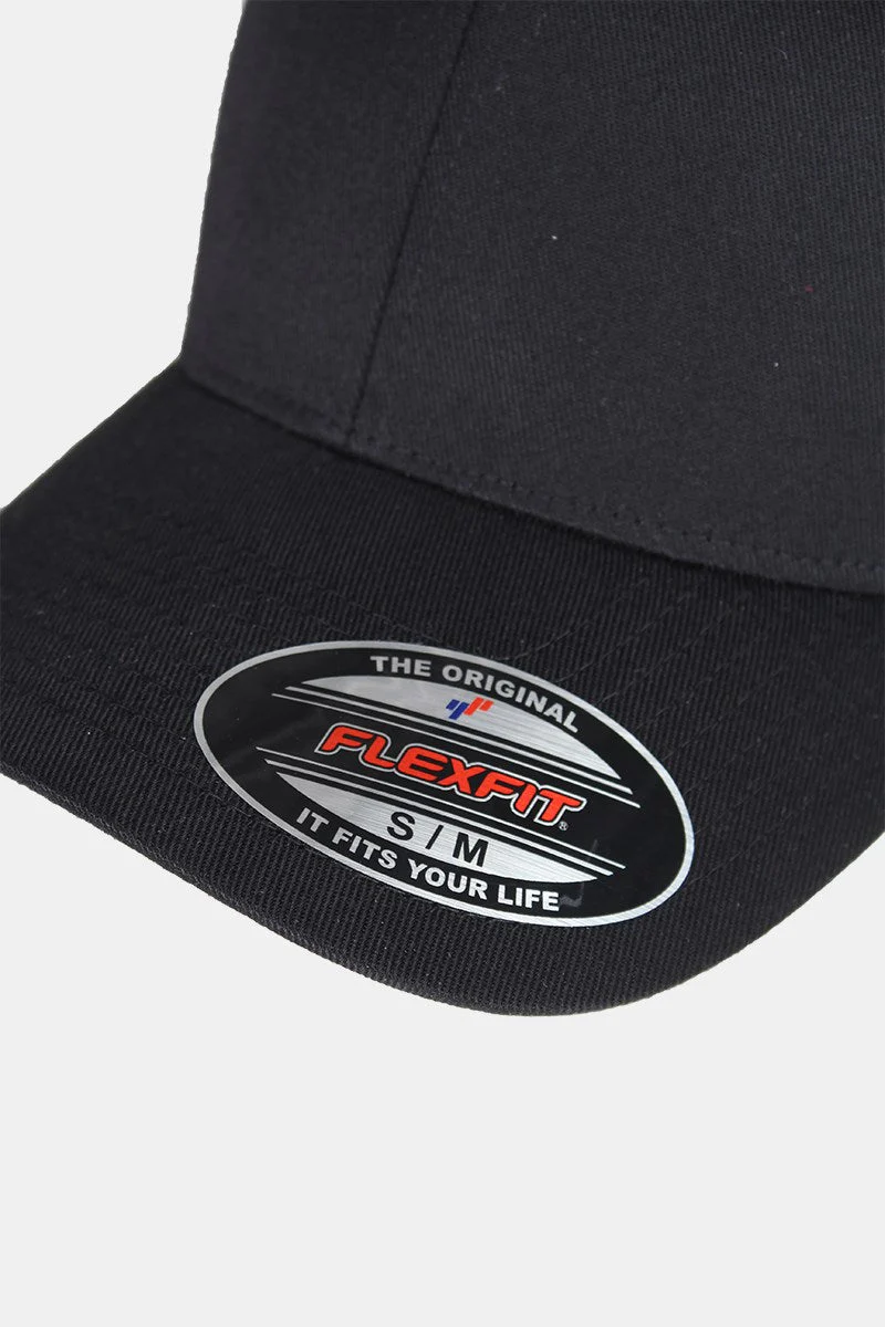 Svart Flexfit keps. Kepsen har sex lufthål i toppen samt Flexfit logga på skärmen. Kvalitet: 63% Polyester, 34% Bomull, 3% Elastan