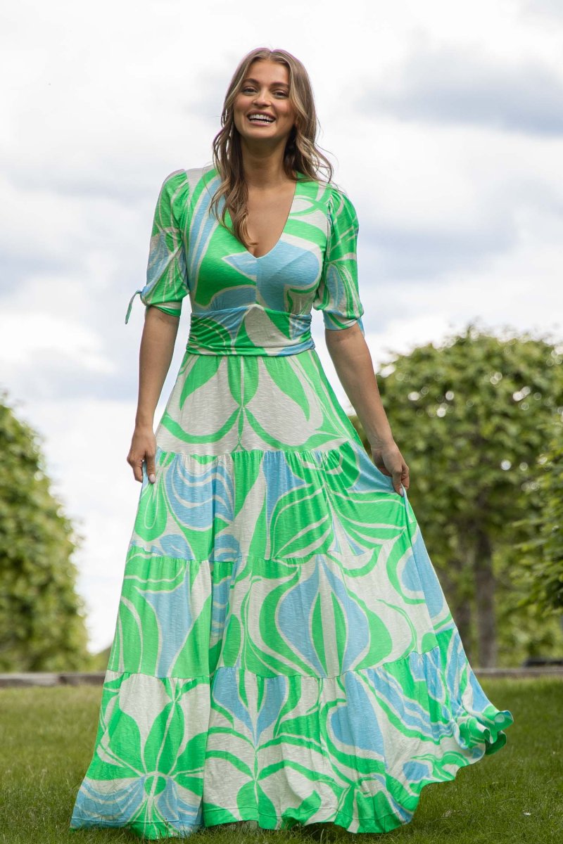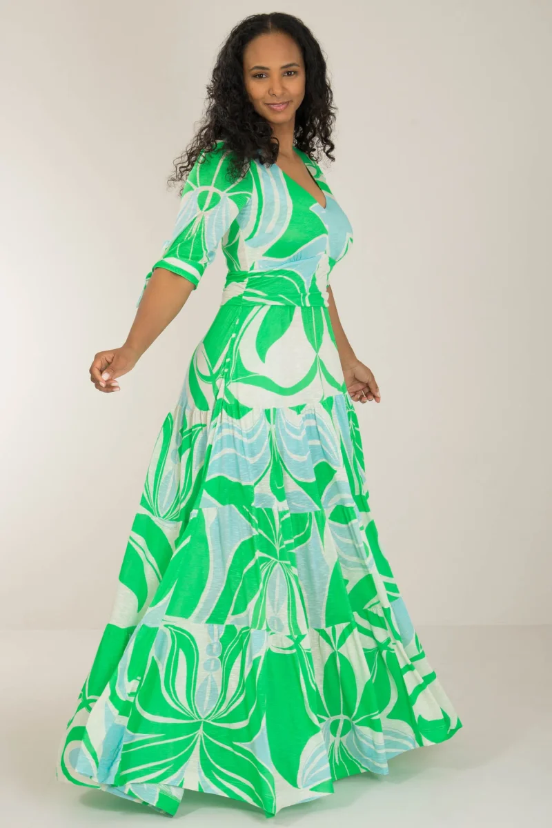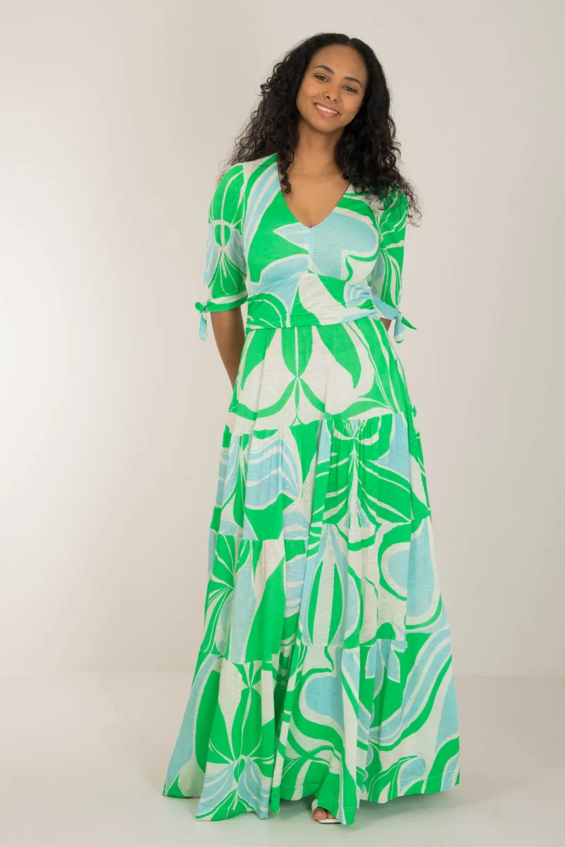 Vår Flowy maxi jersey dress är en sommardröm i form av en maxad maxiklänning. Tillverkad i mjuk viskostrikå med en vid kjol i våder, är denna klänning perfekt för dig som älskar bohemisk stil. Den kombinerar elegans och bekvämlighet på ett sofistikerat sätt. Med en figursydd överdel, puffiga ärmar och draperat midjeband skapas en balans mellan enkelhet och sofistikation. För extra bekvämlighet har klänningen sköna fickor i sidan.
