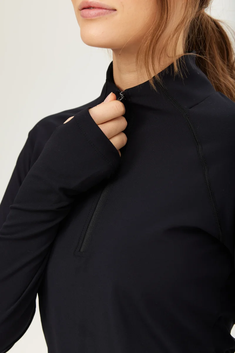 Upptäck vår Half Zip Pullover Long Sleeve i svart från Drop of Mindfulness – den ultimata långärmade tröjan för både träning och vardag. Denna tröja är designad med en stilren halvlång dragkedja och praktiska tumhål för extra komfort och funktionalitet. Tillverkad i vårt butter soft material som erbjuder extrem komfort och hög andningsförmåga. Perfekt för dig som vill ha en mångsidig och bekväm tröja som passar alla tillfällen.
