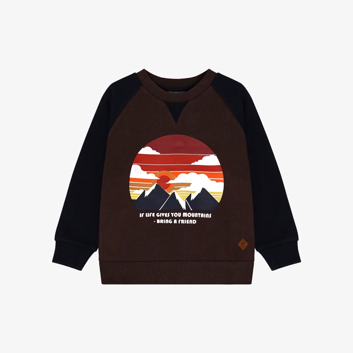 Mjuk sweatshirt med raglanärmar och retroinspirerat tryck framtill. Tröjan har en bekväm passform med ribbade muddar i ärmar och nederkant. Tillverkad i hållbart mjuk ekologisk bomull, perfekt för avslappnade äventyr och lek. Detaljer med ebbes logo.