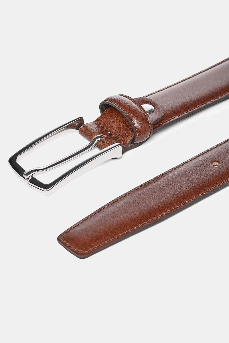 Det här skärpet i cognacfärgat läder är ett stilrent och tidlöst tillskott till din garderob. Tillverkat av mjukt och naturligt vattenavvisande läder från nötkreatur, erbjuder det både hållbarhet och elegans som varar länge. Skärpet har ett snyggt spänne med en traditionell nålspänne-funktion, vilket gör det enkelt att justera och bära vid olika tillfällen.