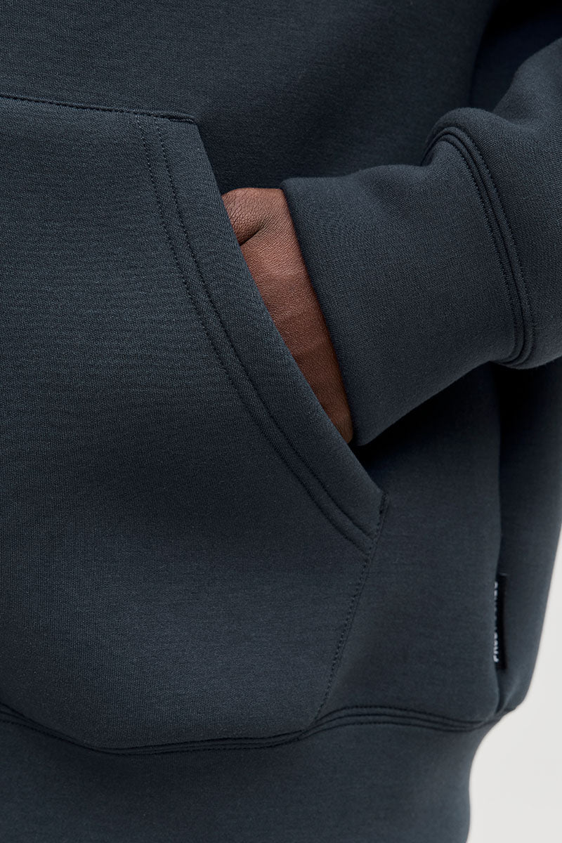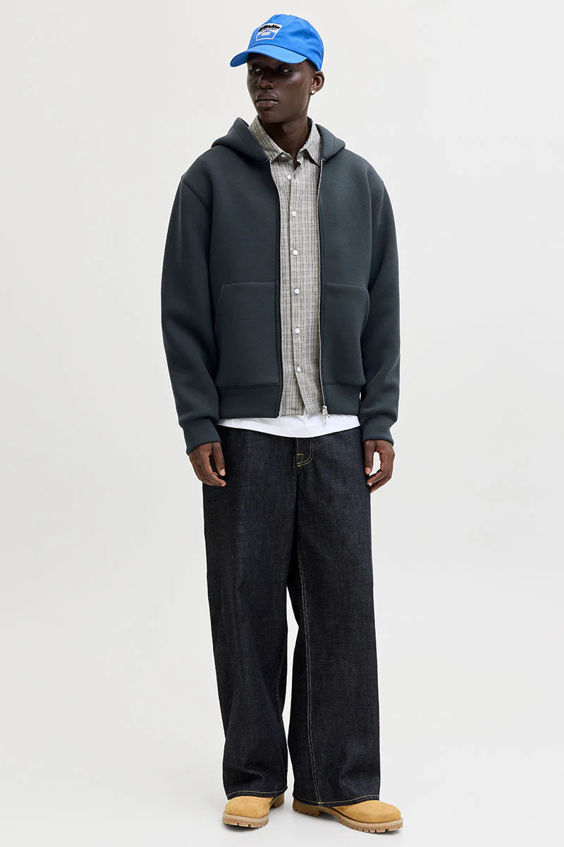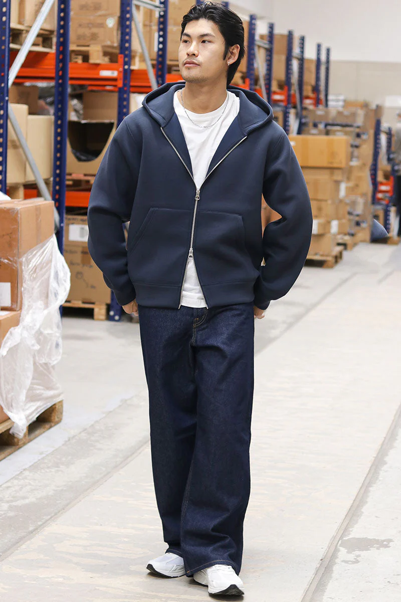 Denna Scuba Sweat Zip Hoodie är utformad för en avslappnad och bekväm stil som passar perfekt för vardagen eller helgens lugna stunder. Den har en luva och lång ärm med dragkedja framtill, vilket gör den enkel att ta på och justera efter behov. Materialet är en mjuk och lätt jersey som ger både stretch och komfort, vilket bidrar till plaggets lösa passform. Insidan är inte borstad, vilket gör den lätt och luftig.