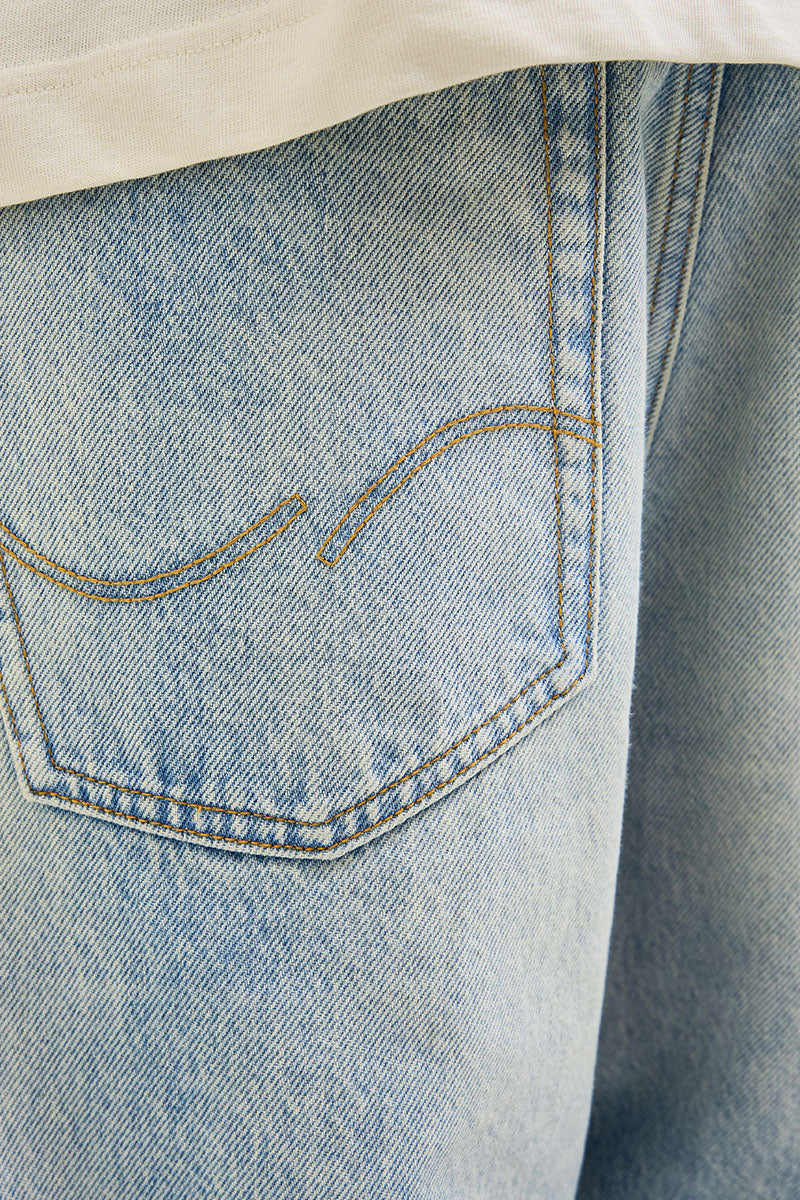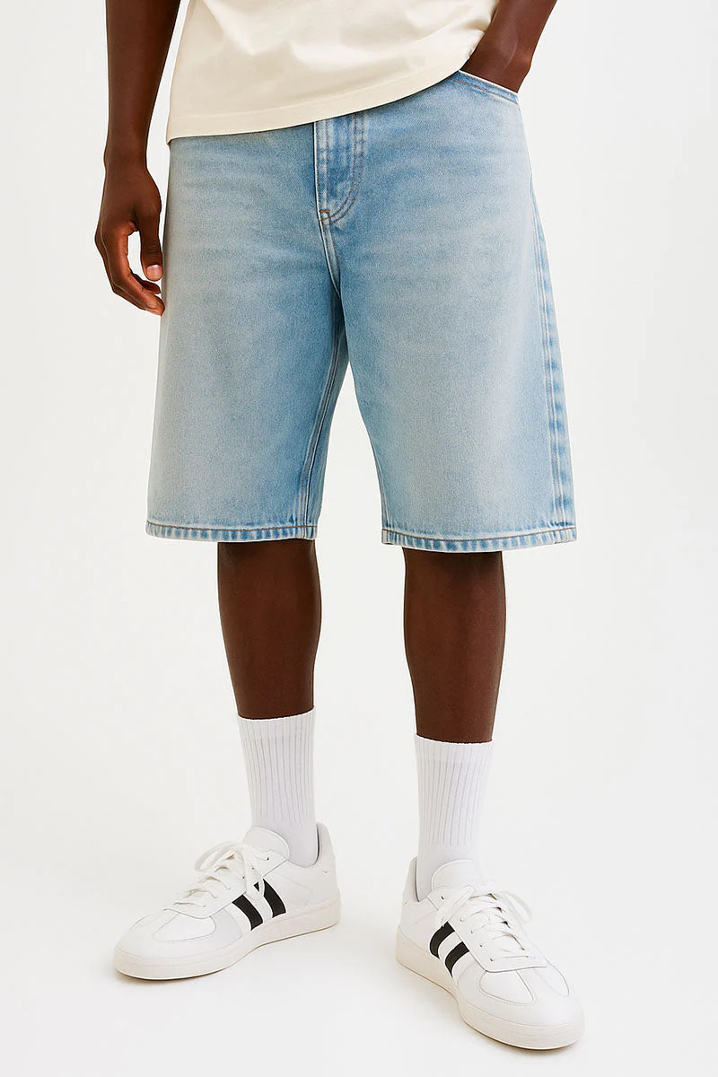 - Ljusblå denimshorts med extra baggy passform.