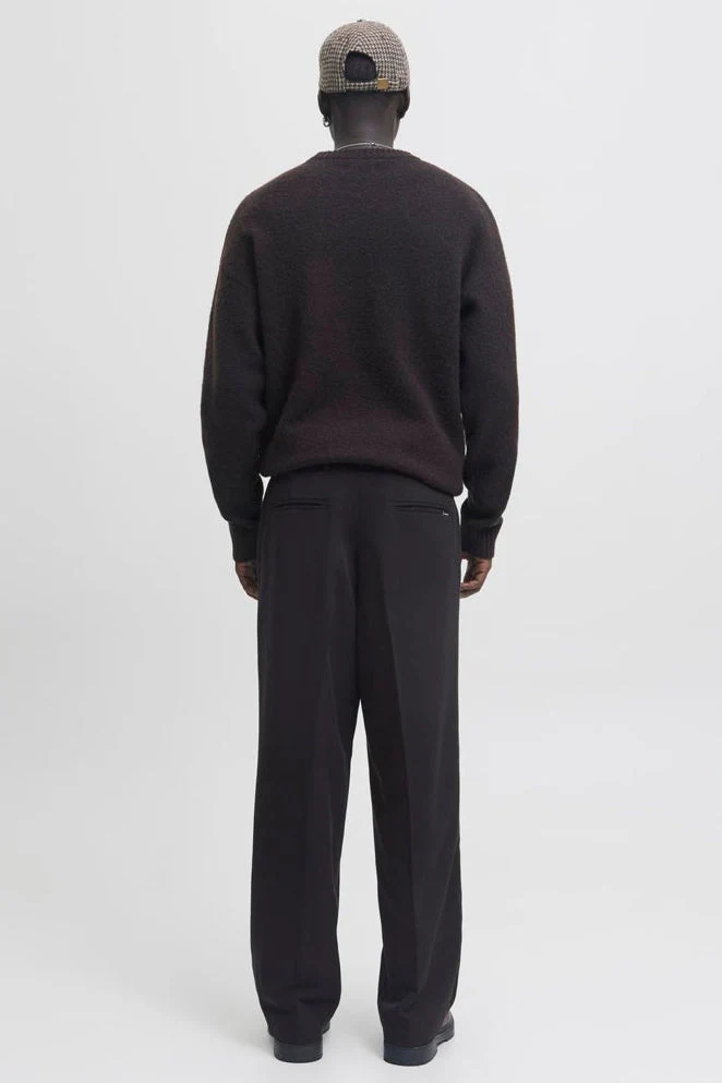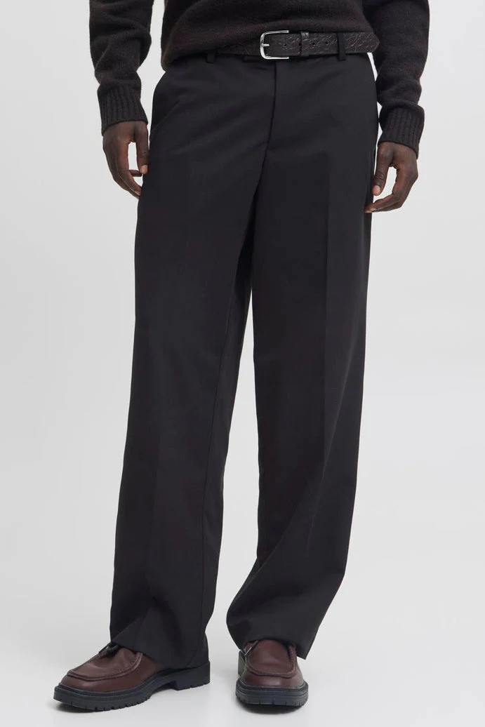 Chinos i en stilren och tidlös design som passar perfekt som ett smart-casual alternativ till jeans. De har en vid passform med hög midja och lågt placerad midja, vilket skapar en bekväm silhuett med vida lår, knän och benslut. Tyget är vävt, vilket gör det starkt och hållbart utan stretch, och färgen är svart för en mångsidig look.
