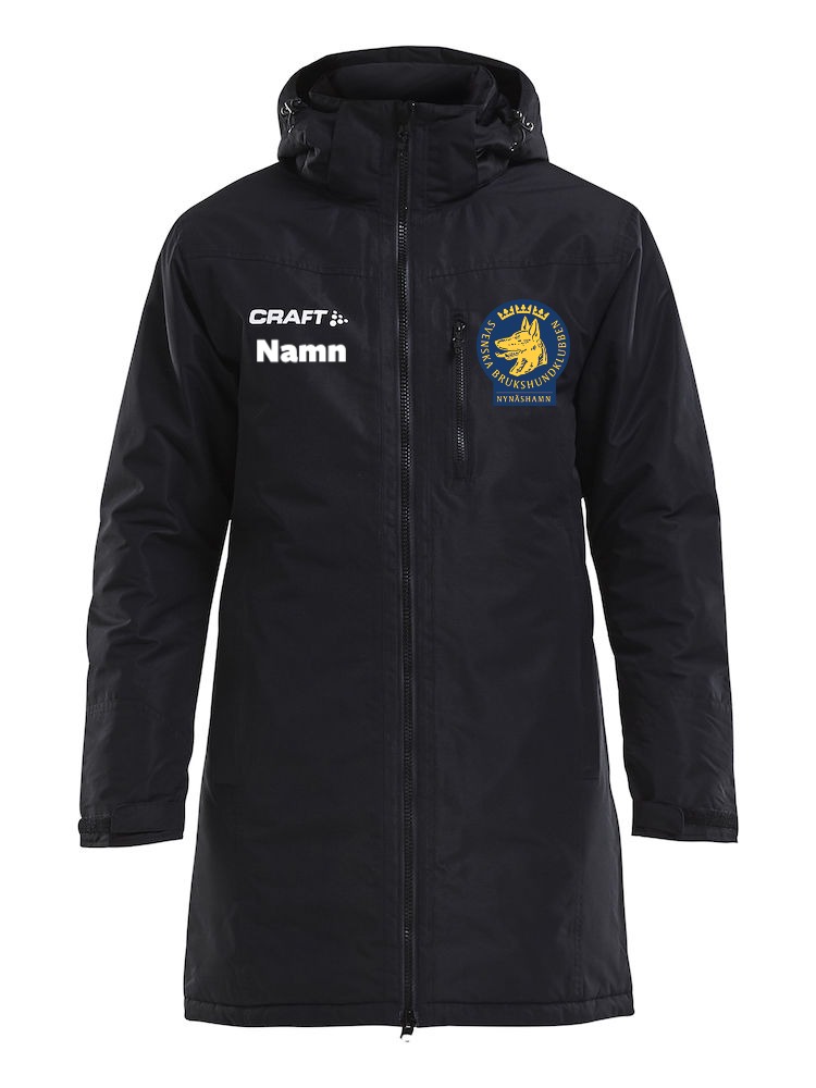 Vadderad lång jacka i slitstarkt yttertyg som passar perfekt vid uppvärmning i kyliga förhållanden eller som varm jacka för ledare och spelare på avbytarbänken. Utrustad med 2-vägs dragkedja, avtagbar huva, sex fickor och justerbara ärmslut.