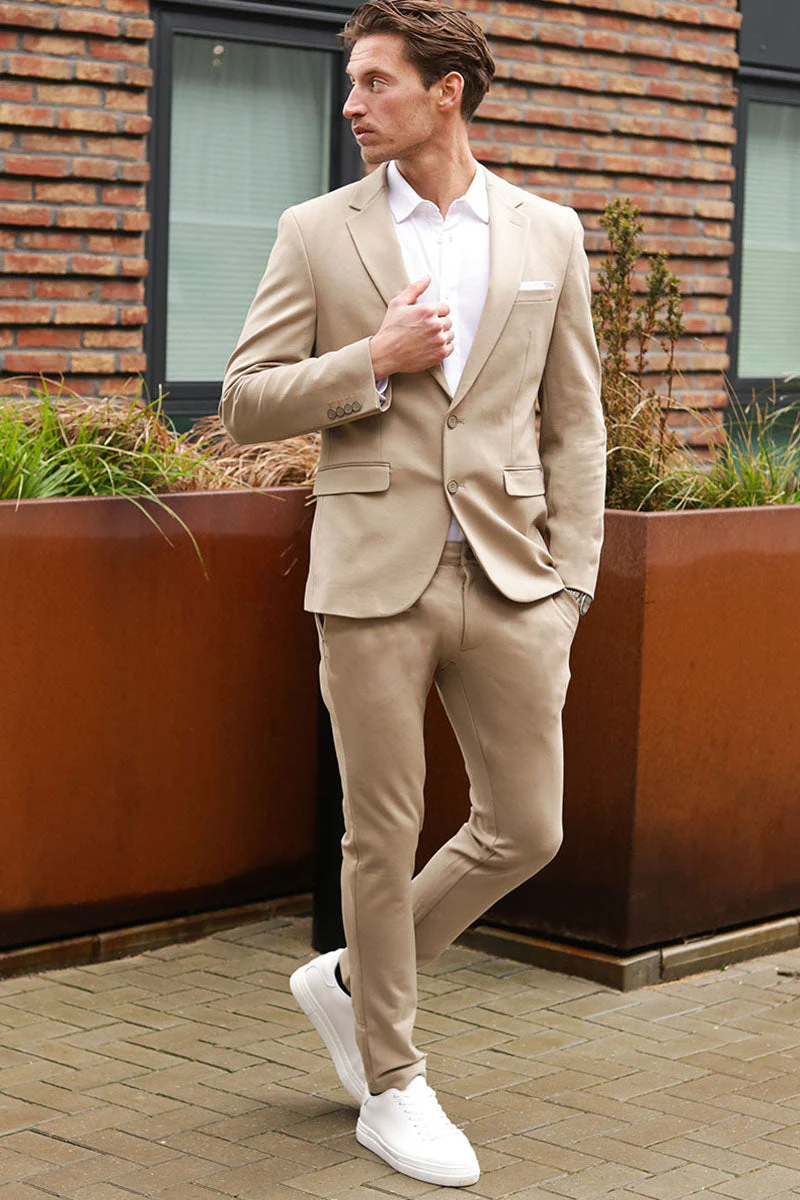 - Enfärgade kostymbyxor med klassisk stängning.