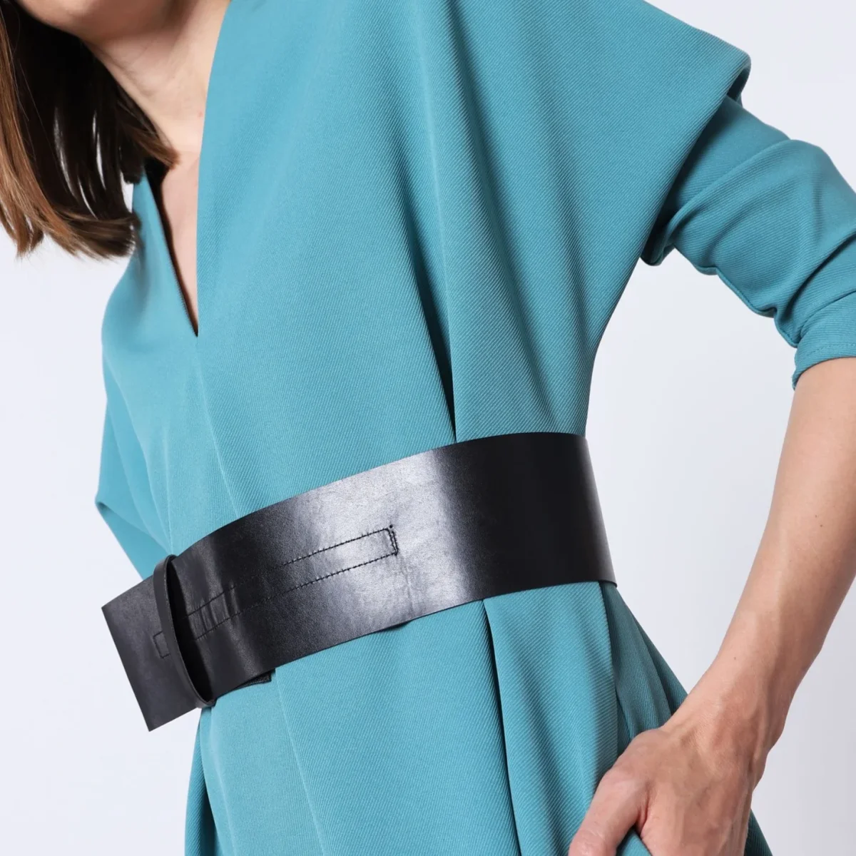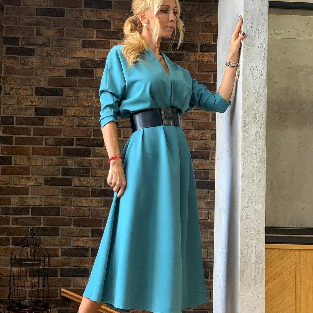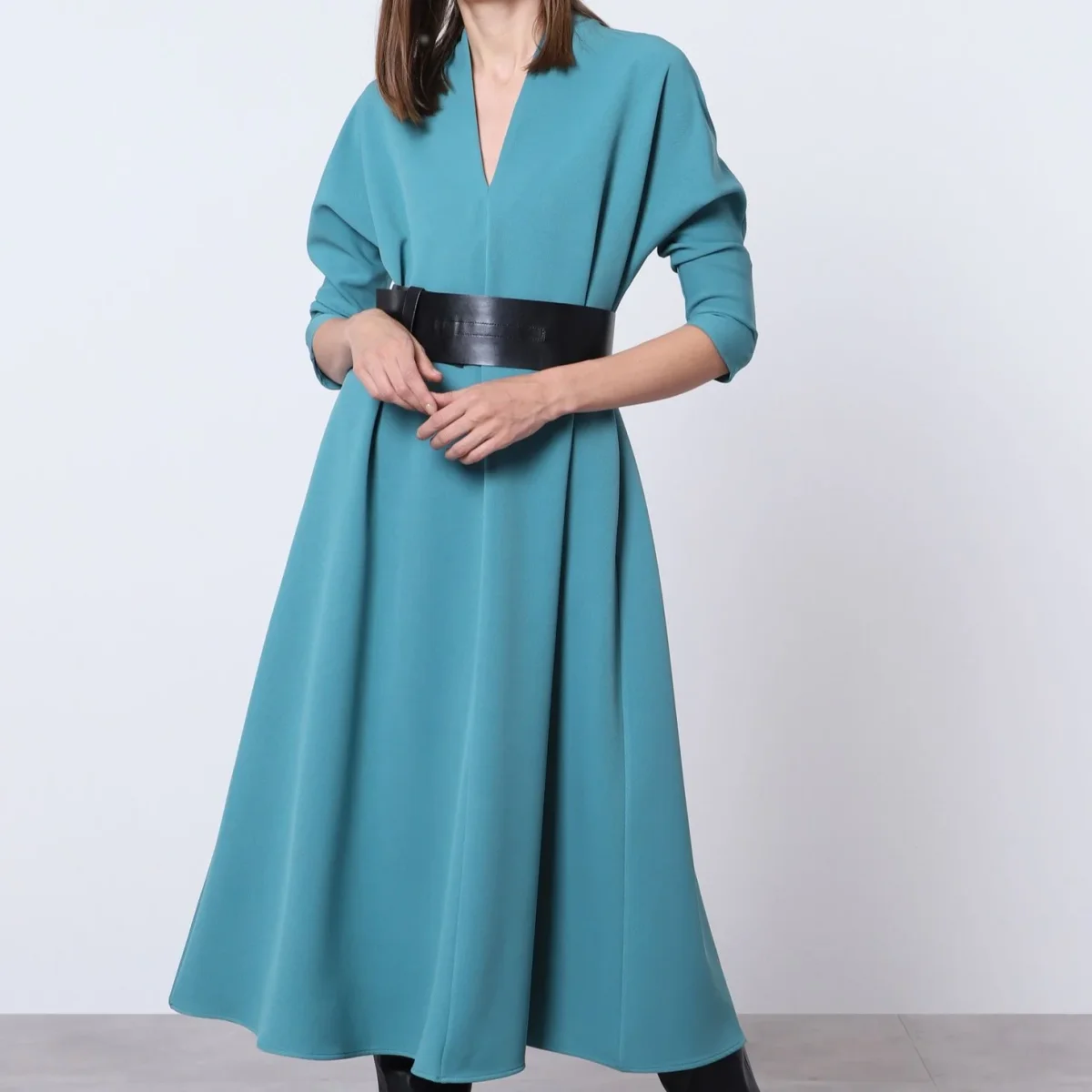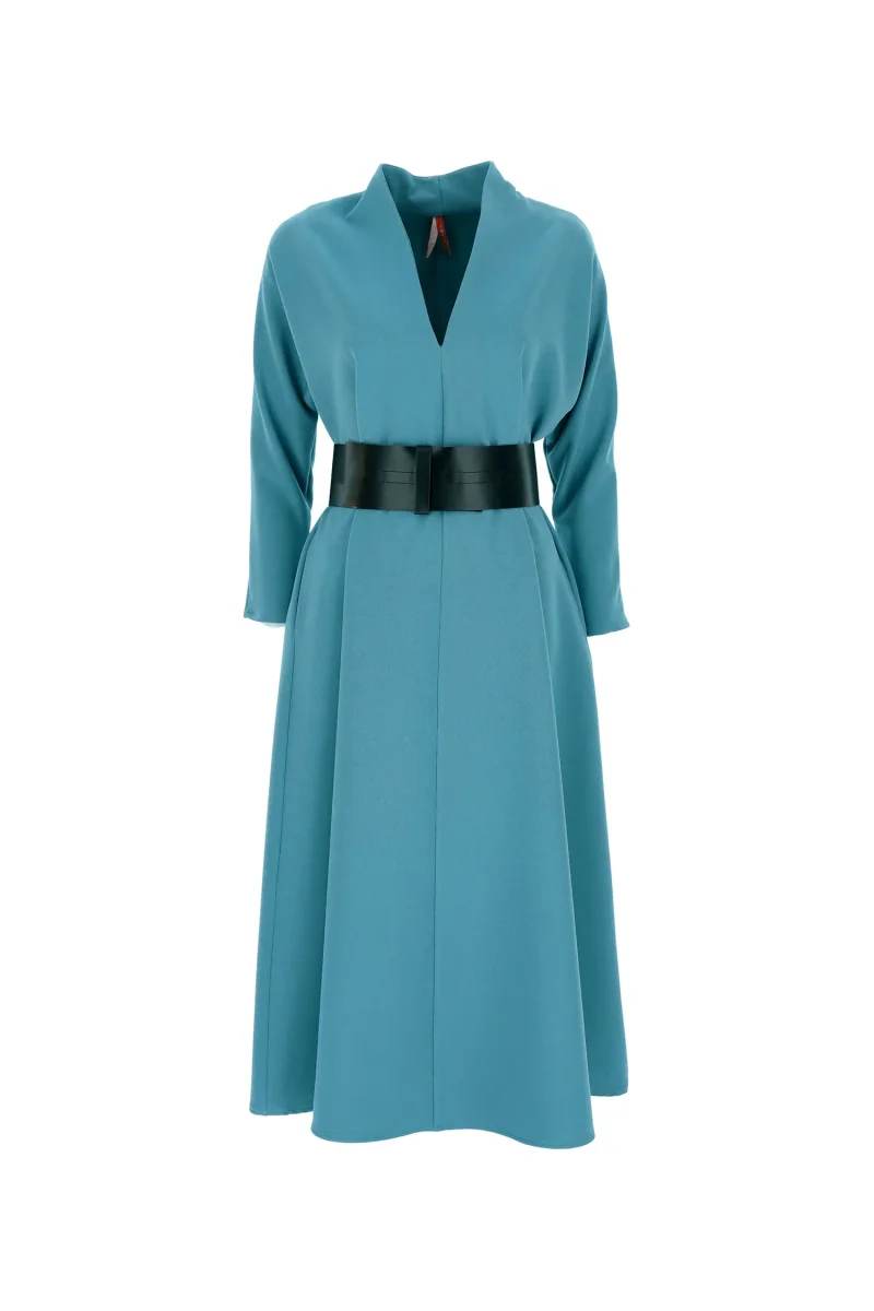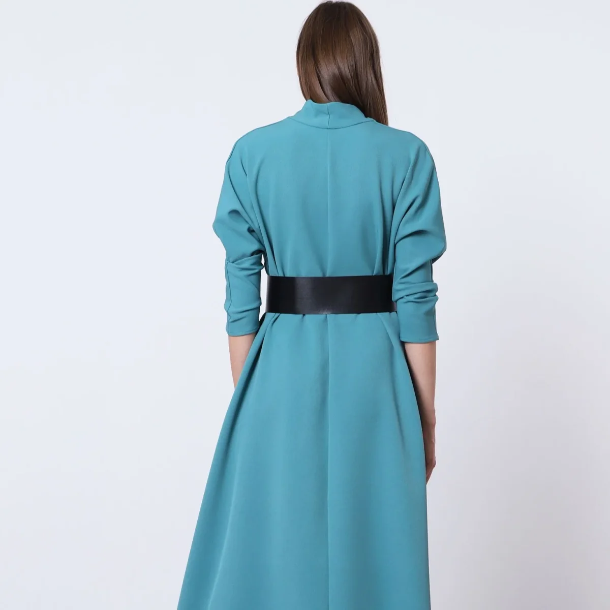 Lång klänning med kraftigt bälte och batwing-ärmar från Imperial Fashion