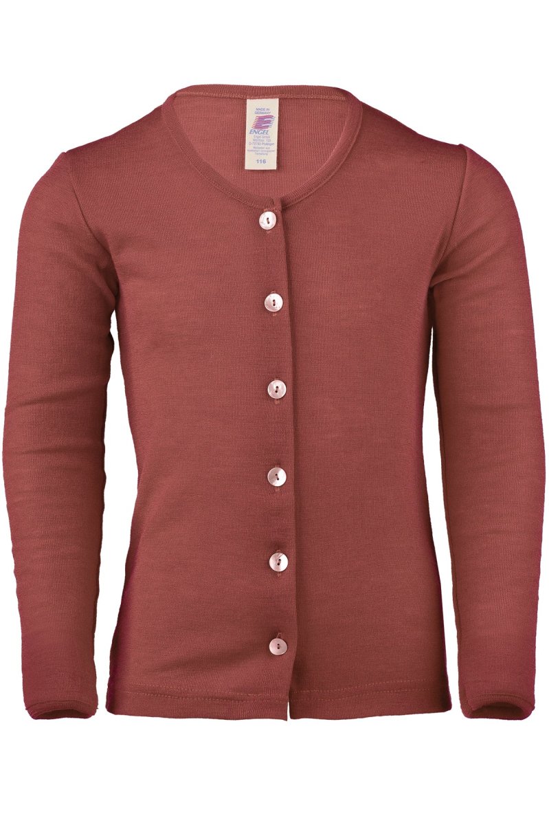 Finstickad lite tunnare kofta i Engels härliga ull- och silkesblandning. Vackra pärlemorknappar fram. En användbar kofta, både till fint och till vardags, som kan bli en riktig favorit! Tillverkad i Tyskland i 70 % ekologisk ull och 30 % silke.