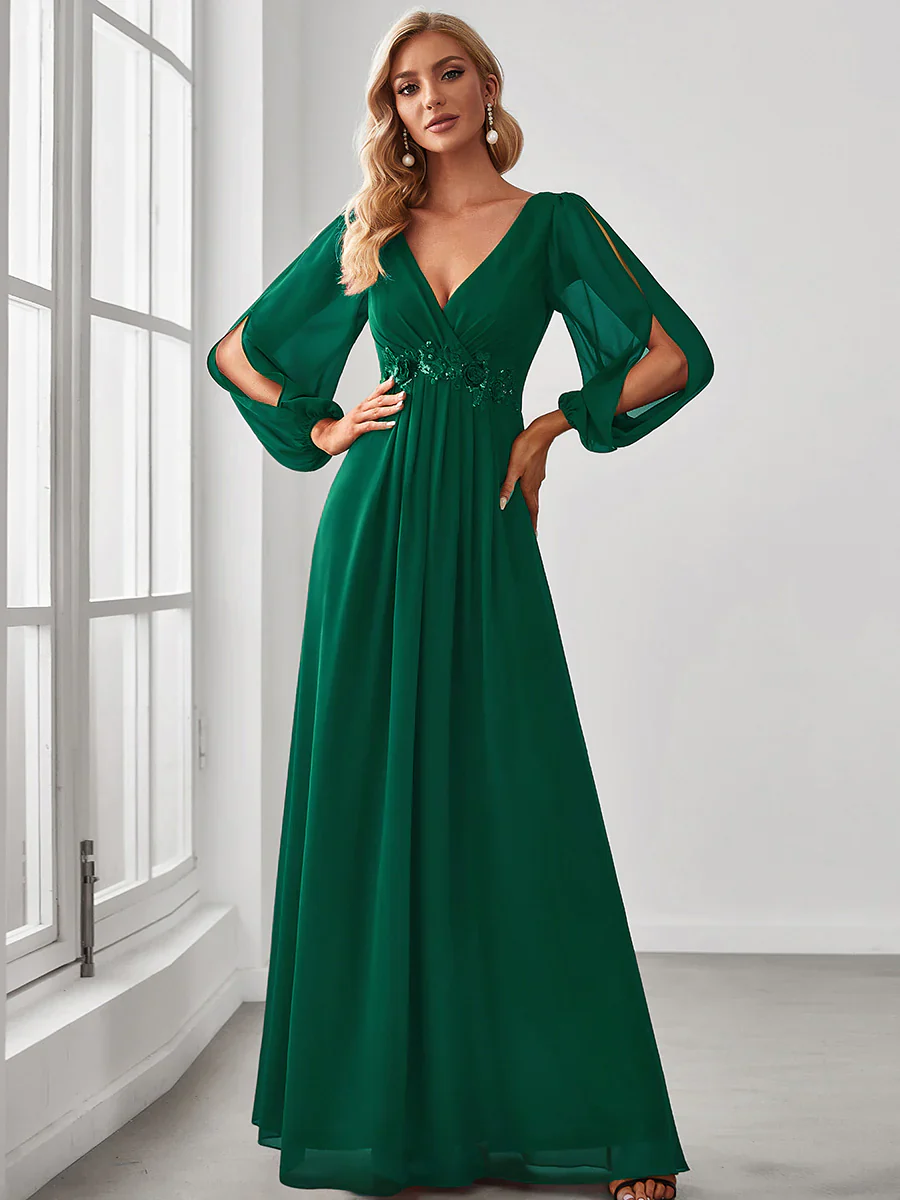 Lång klänning med ärm EP00461 med slitz på ärmarna