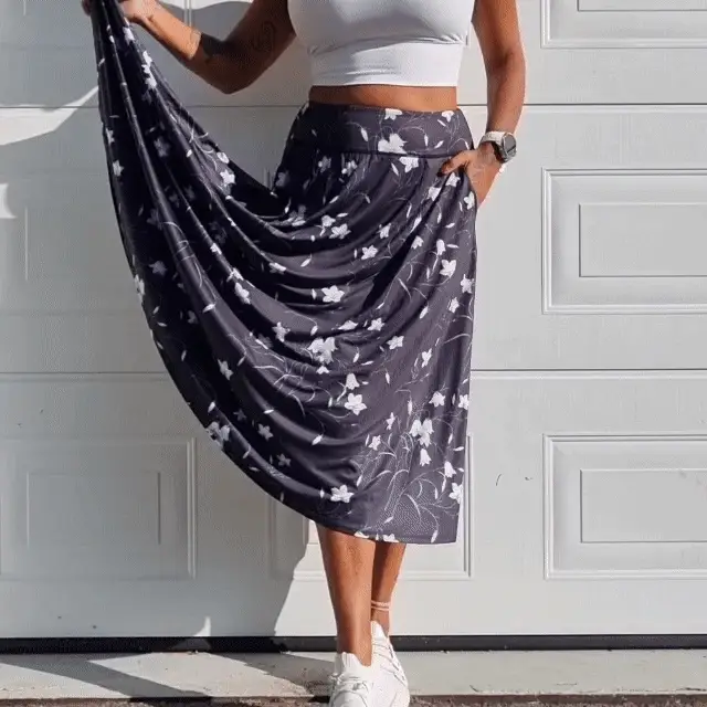 - Blommig kjol med innershorts till vardag, sport och fest.
