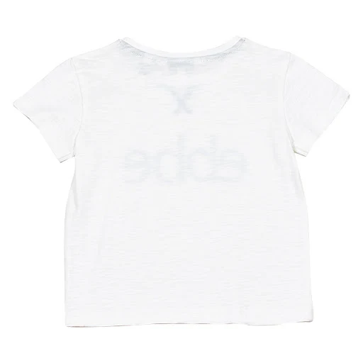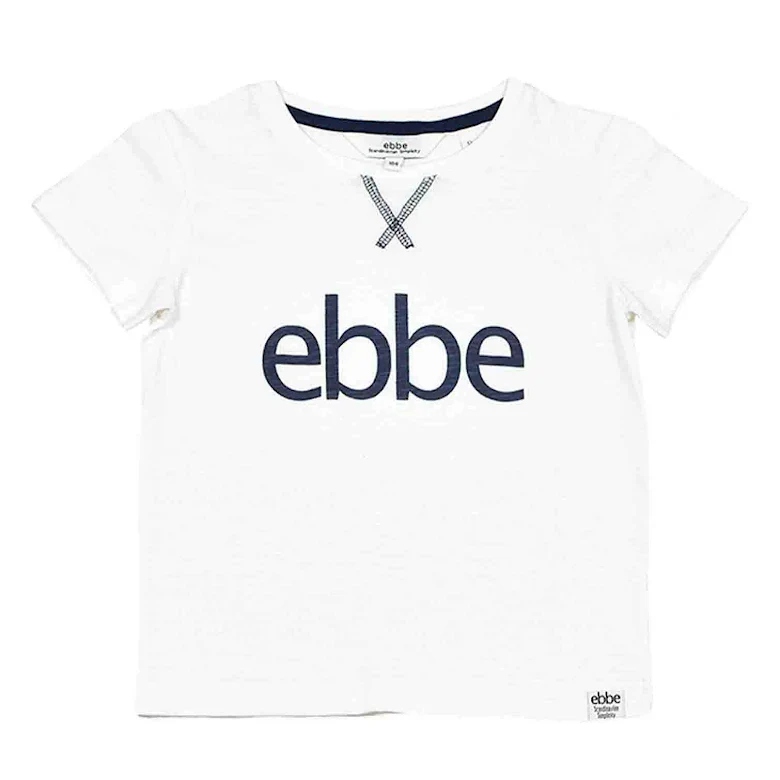 Korsad dekorsöm vid halsen och den klassiska ebbelogotypen över bröstet.