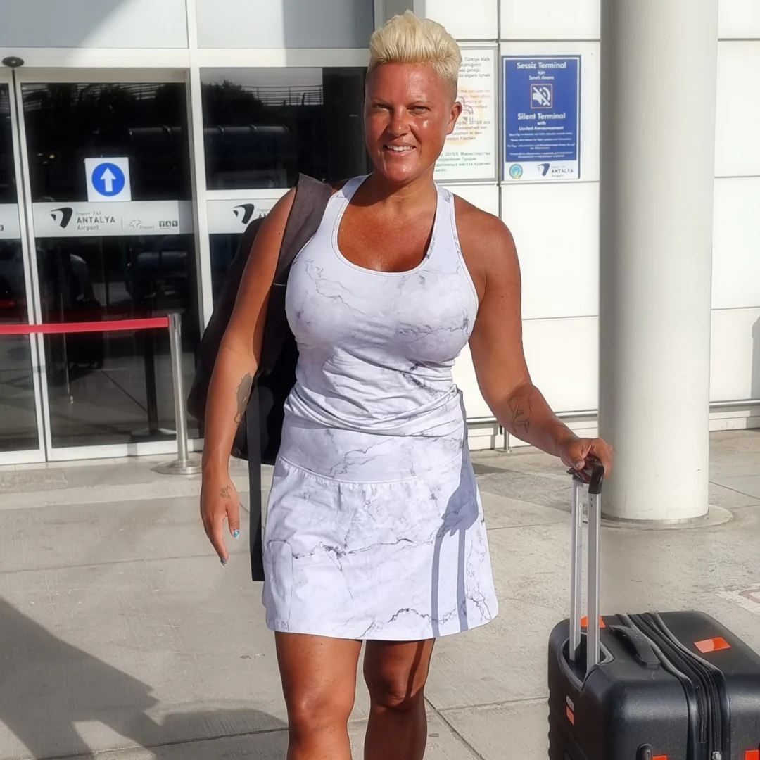 Vårt marmormönstrade linne har en mer kroppsnära passform. Den X-formade ryggen ger rörelsefrihet. Den passar all form av träning. Vill du ha en lösare passform, kan du gå uppåt i storlek, vill du ha en tajtare passform, kan du gå nedåt i storlek. Tillsammans med Byxkjol marmor, ser outfitten ut som en padelklänning.