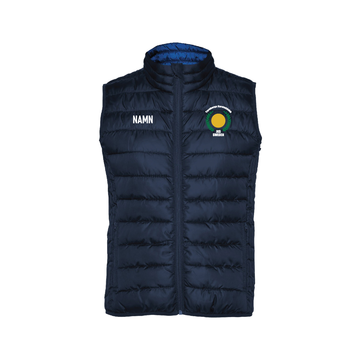 Stilsäker dunväst, skyddar mot vind och vatten, idealisk för varierande väder och aktiviteter.