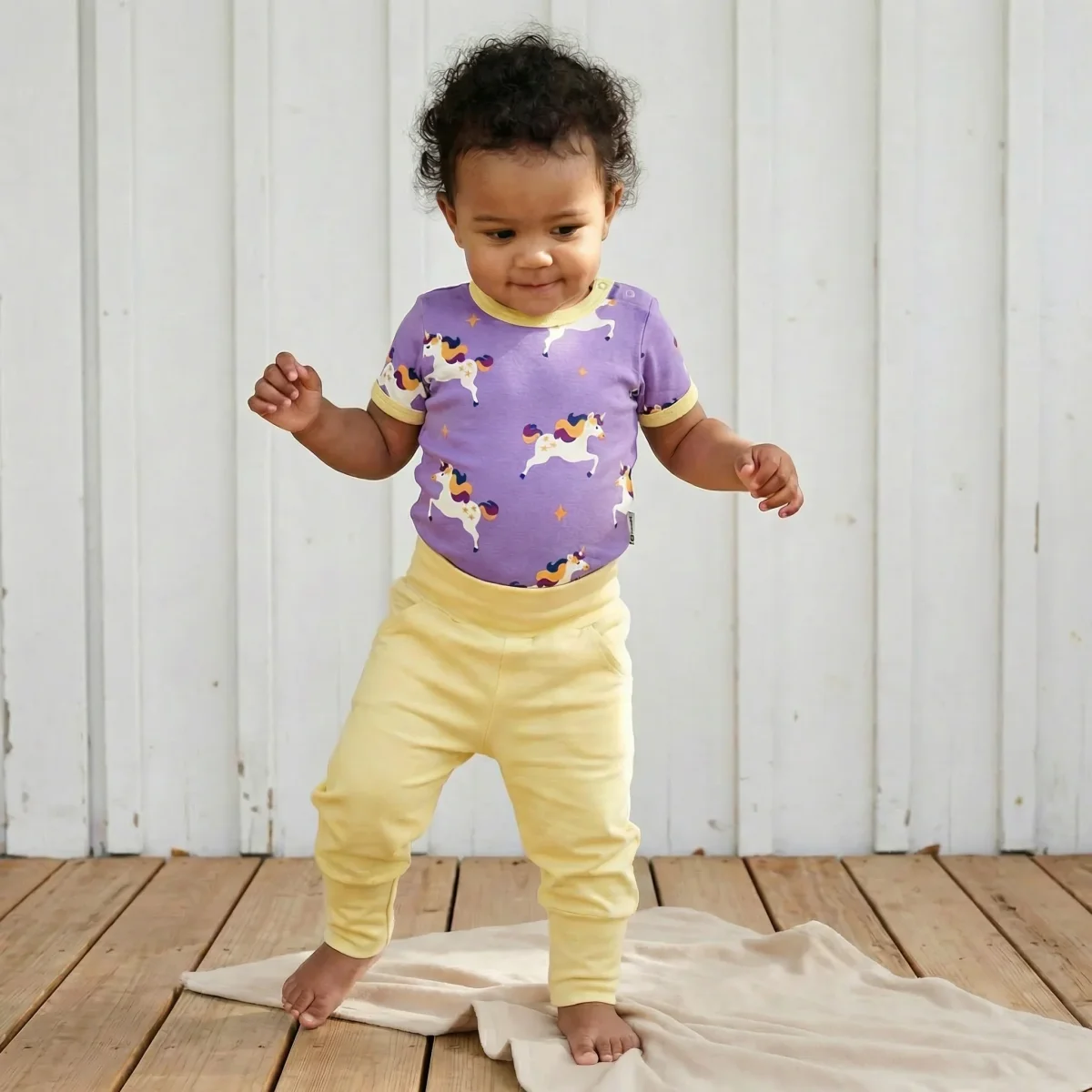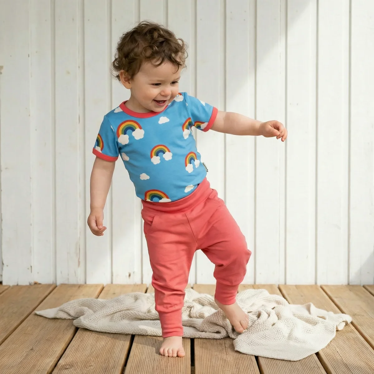 Mjukisbyxorna är tillverkade i Indien i 95 % ekologisk bomull och 5 % elastan, vilket gör dem till ett både hållbart och bekvämt val till ditt barn. Tillverkade i Indien.