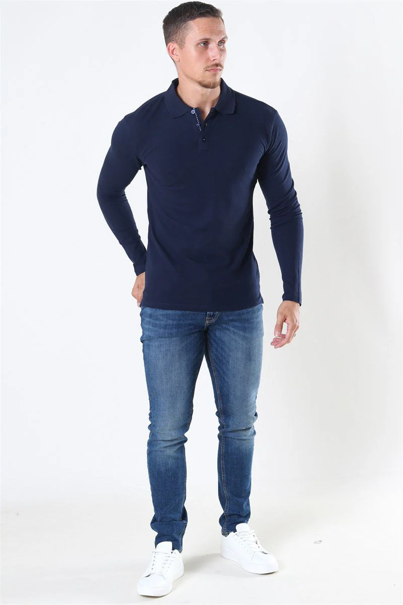 Muscle fit Polo LS i Blue Navy är en långärmad piketröja som är perfekt för högtidliga tillfällen eller bara en vanlig dag. Den ger en sofistikerad och elegant touch till din look och är idealisk för både arbete och fest. Med sin klassiska polodesign och långa ärmar ger den ett tidlöst utseende som passar alla klädkoder. -