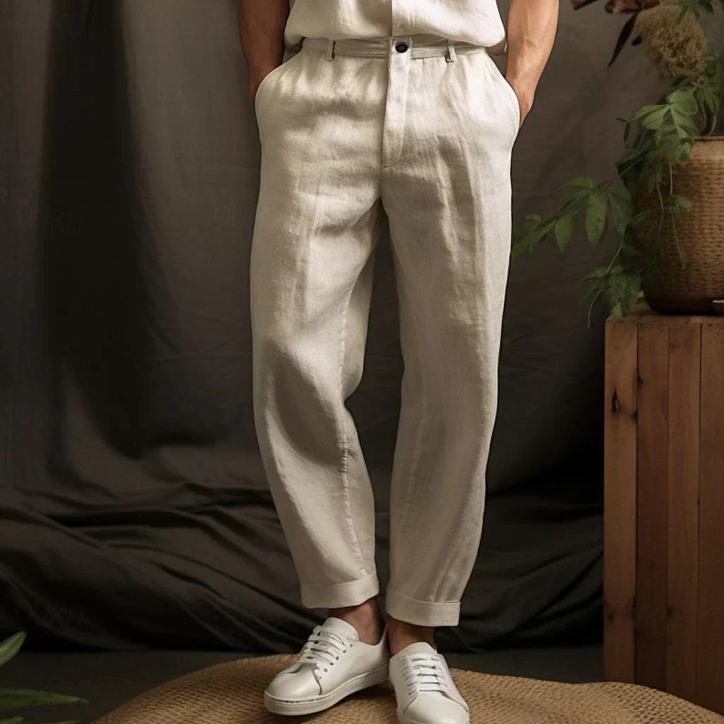 Upplev det bästa inom komfort och stil med Olli – Lösa Byxor för Män i Bomull och Linne. Dessa byxor är det perfekta valet för den moderna mannen som värdesätter elegans och komfort i lika hög grad.