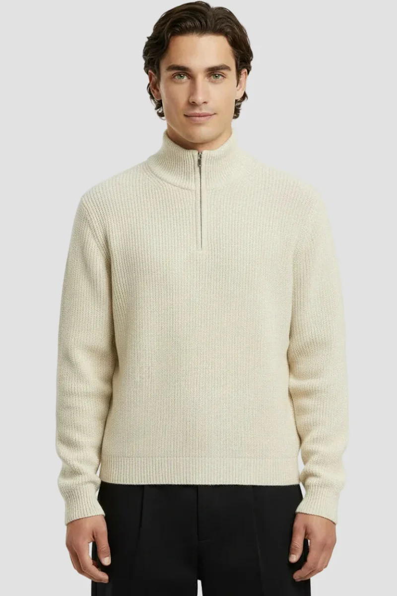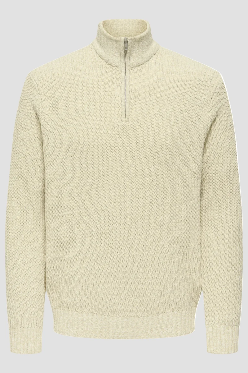 - Grovstickad tröja med hög halsringning och halv dragkedja