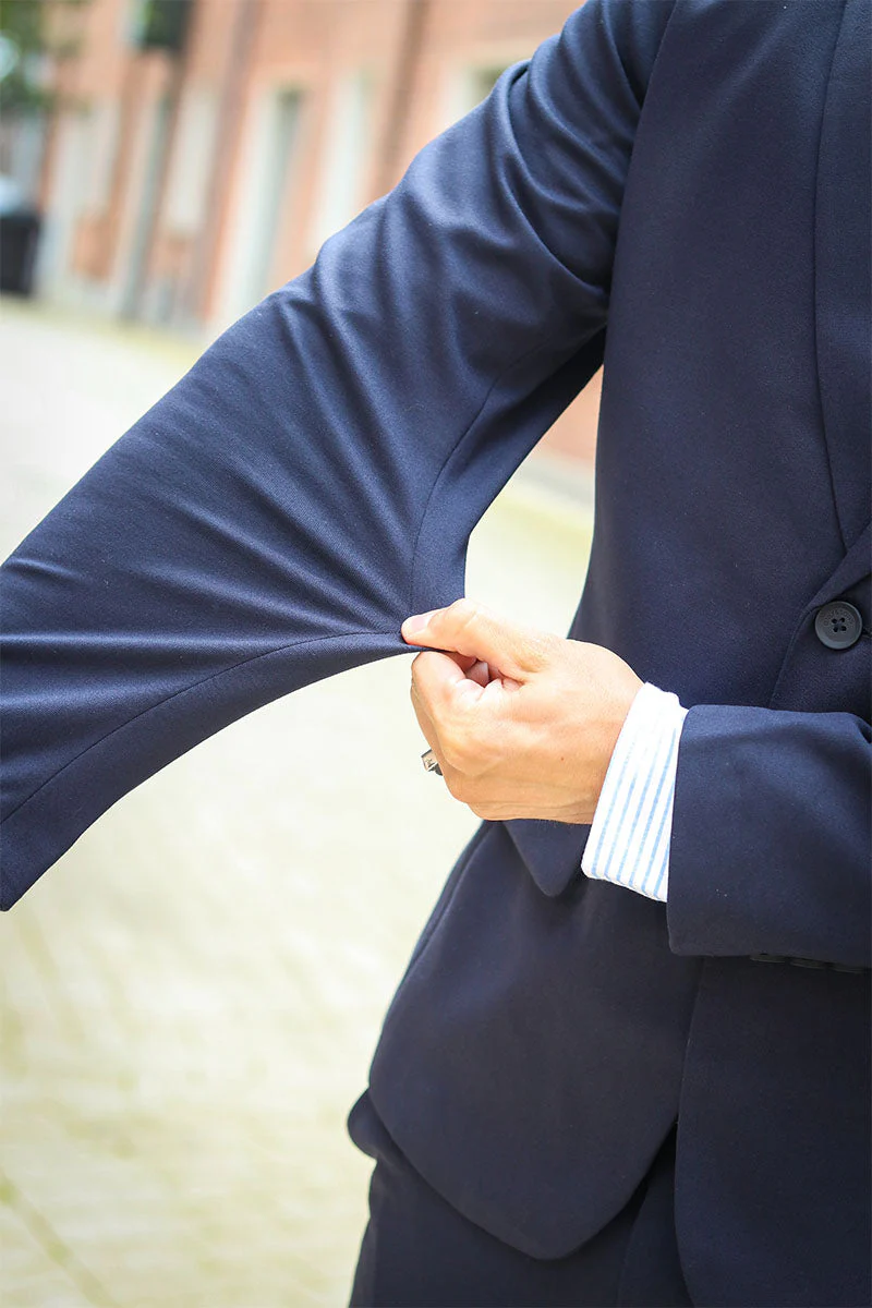 Kan kombineras med kostymbyxor eller skjortor för en komplett och stilren look.