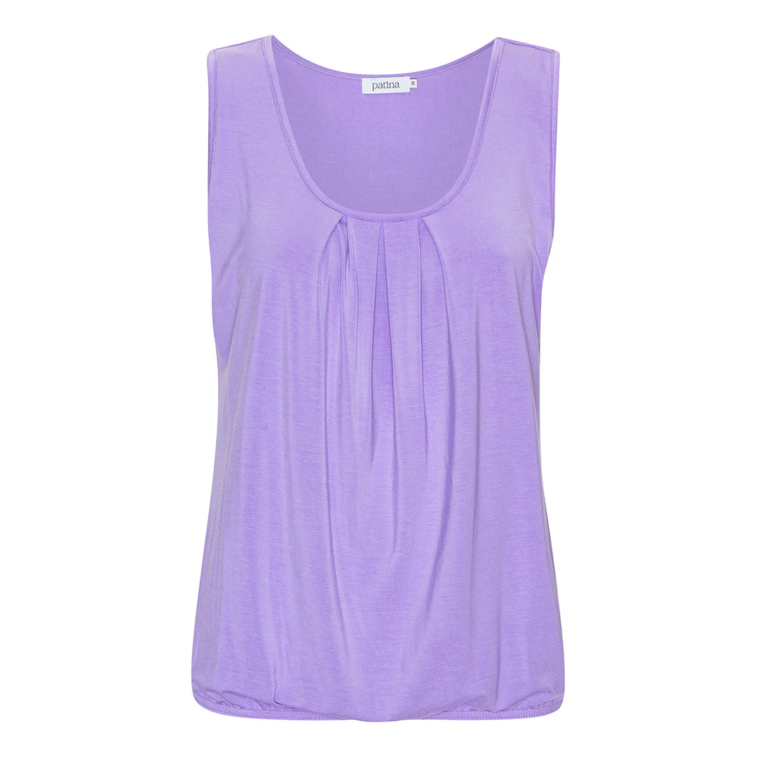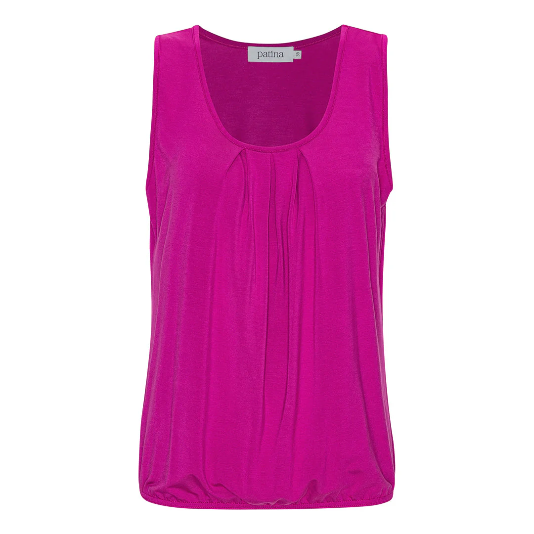 Tyngden på tyget och de tre plisseringarna på bröstet gör att sommartoppen faller fint från din barm och ner över magen. Och så gör resåren nertill att du kan placera toppen precis där du vill ha den på höften.