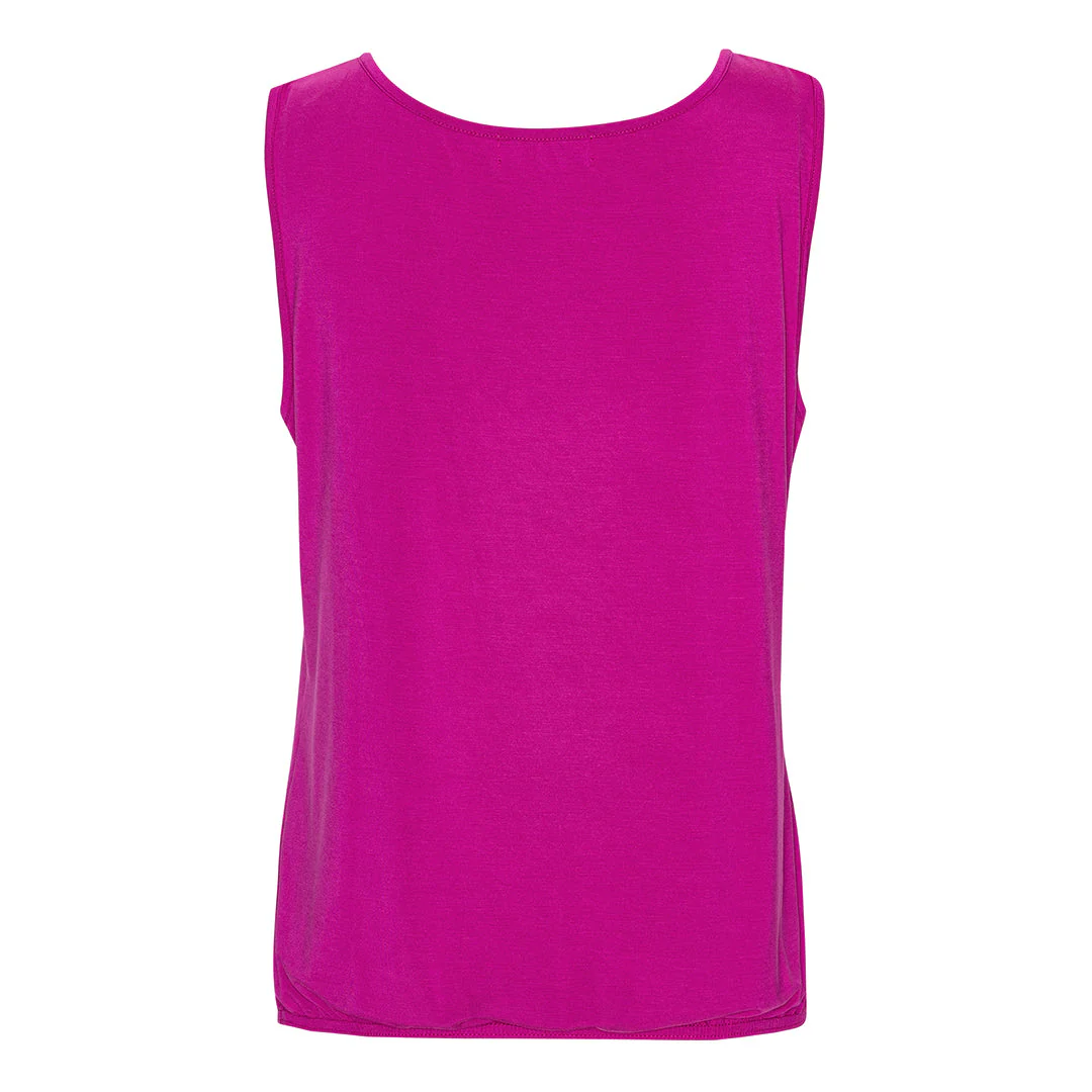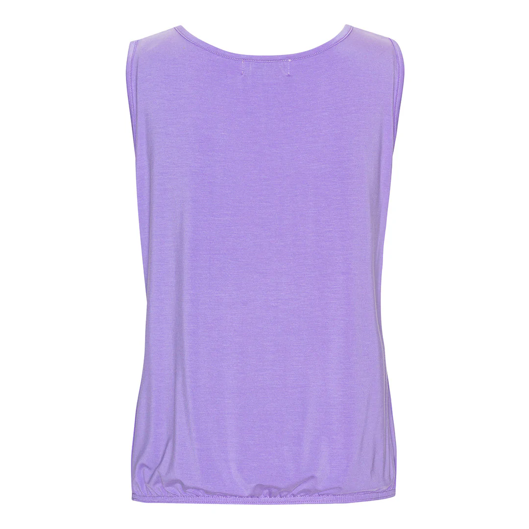 Sommartoppen är tillverkad av 95% bambu och 5% elastan. Elastanet gör att tyget är töjbart. Då kan du röra dig fritt utan att känna att något stramar eller stör dig.