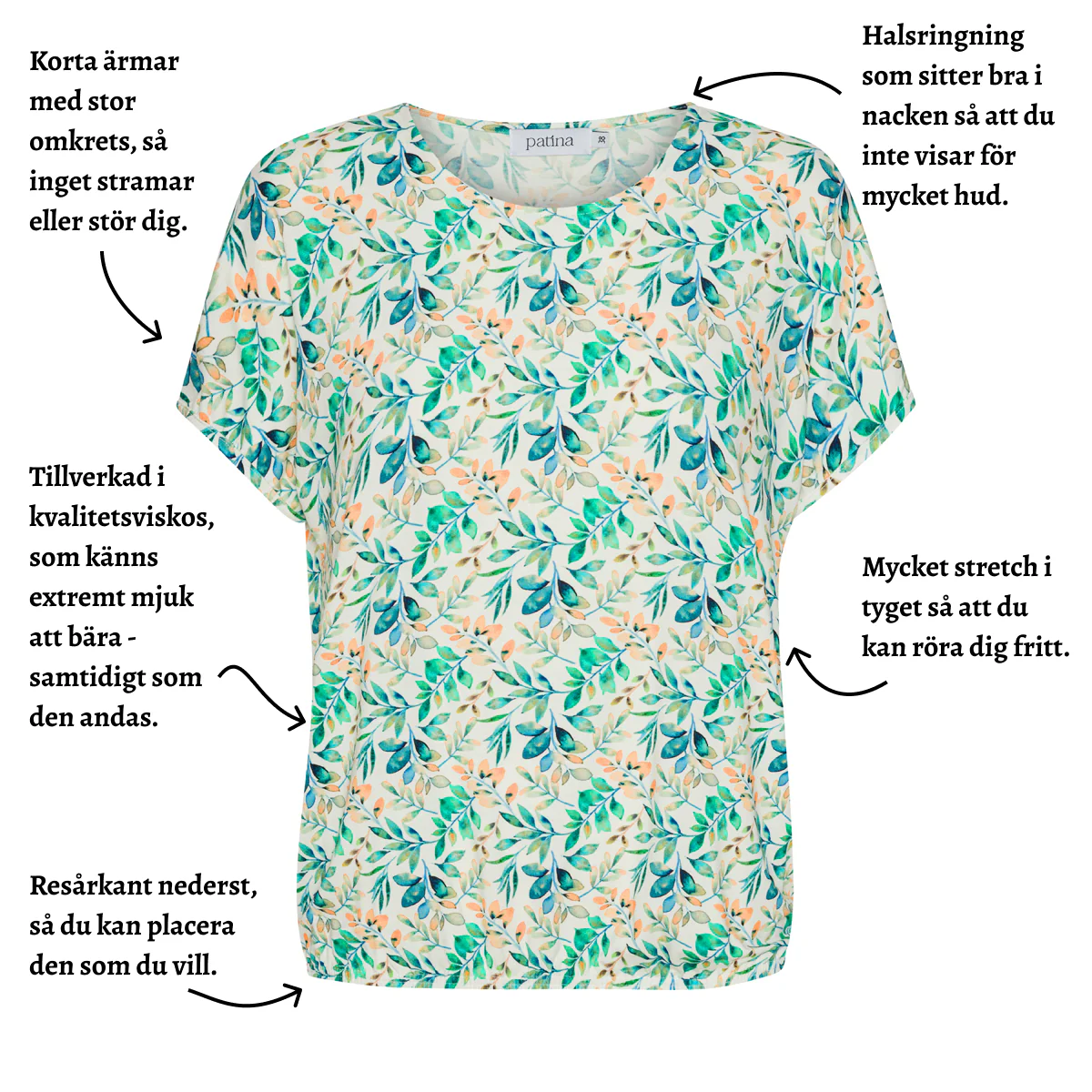 Blusen är tillverkad av en kvalitetsviskos som du kan tvätta om och om igen utan att den tappar passform eller färg.
