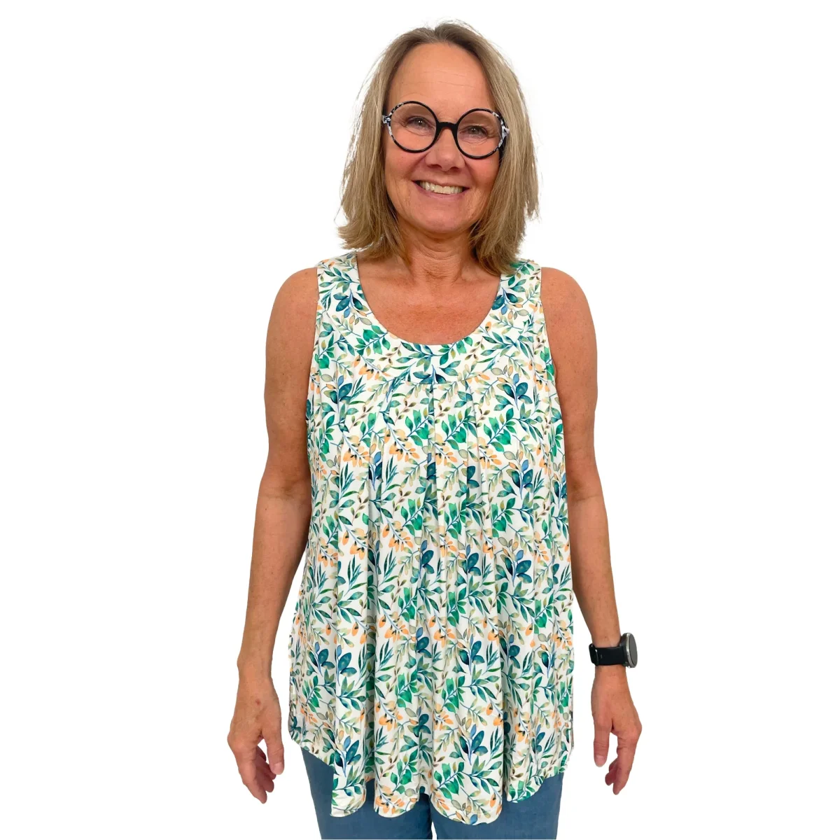 Modell Sonja är en luftig och lätt topp helt utan ärmar, så att du verkligen kan njuta av sol och sommar.