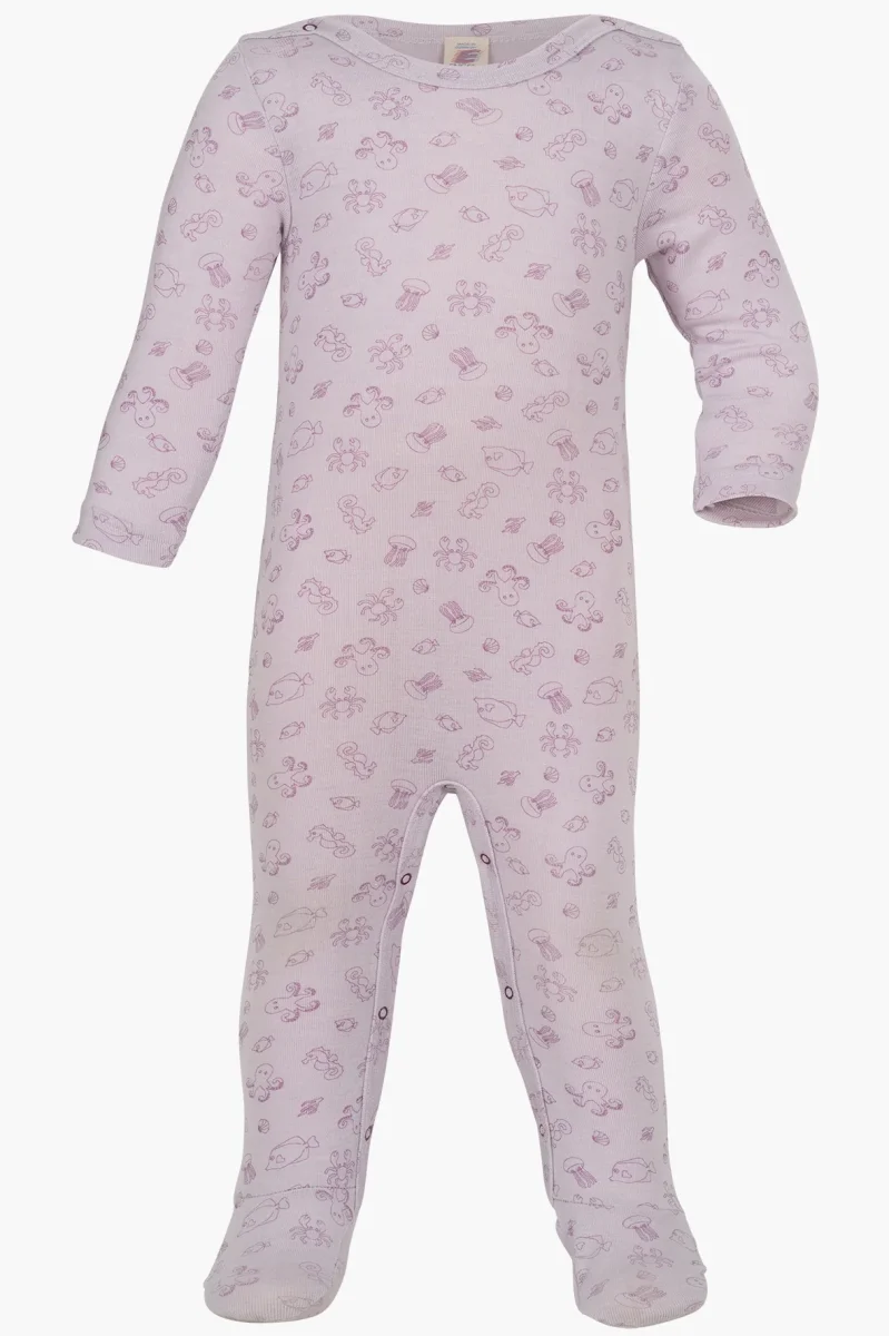 Pyjamas i underbart mjuk ull- och silkesblandning med sött tryck. Knäppning på axlarna och längs båda benen. I en yllepyjamas håller babyn sig lagom varm och sover gott! Pyjamasen har fötter som även håller babyns fötter varma. Materialet känns mjukt och skönt mot babyns känsliga hud och är garanterat giftfritt. Tillverkad i Tyskland i 70 % ekologisk ull och 30 % silke.