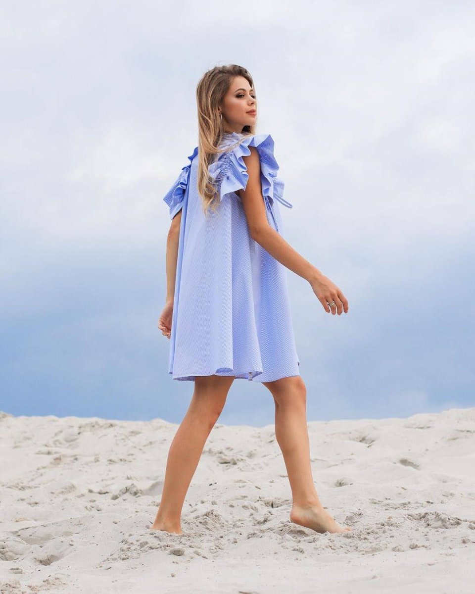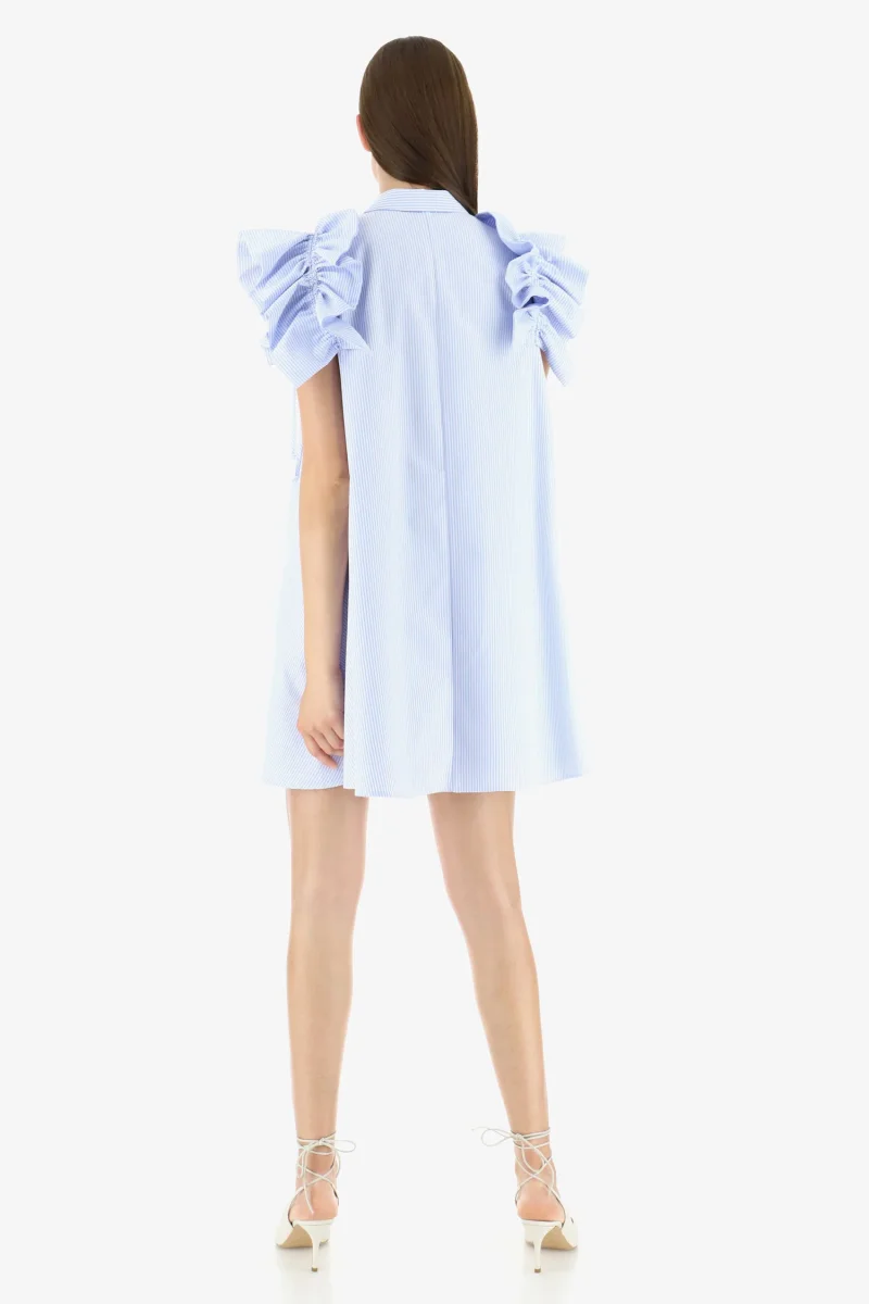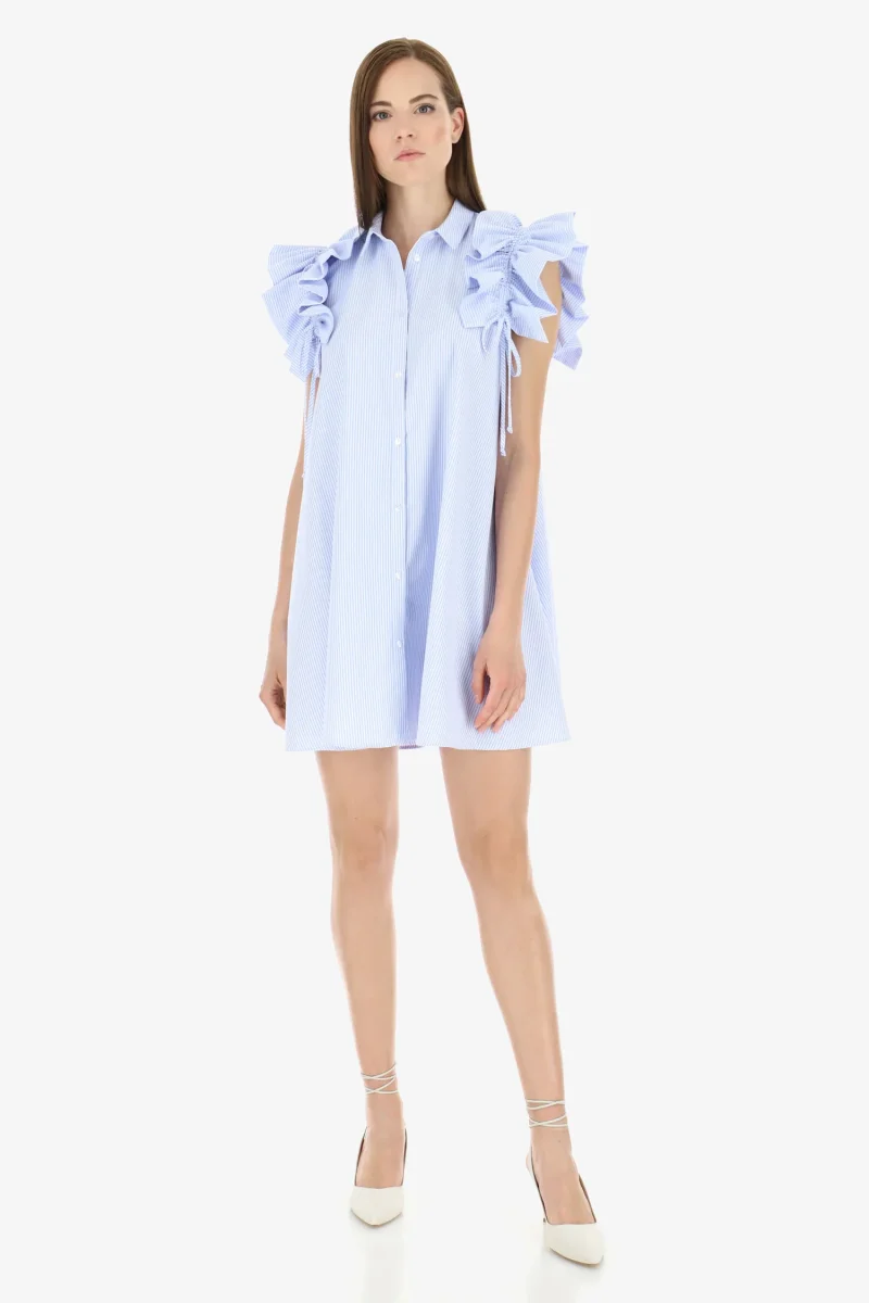 Skjortklänning i avslappnad passform och volangdetaljer på axlarna. Oversized.