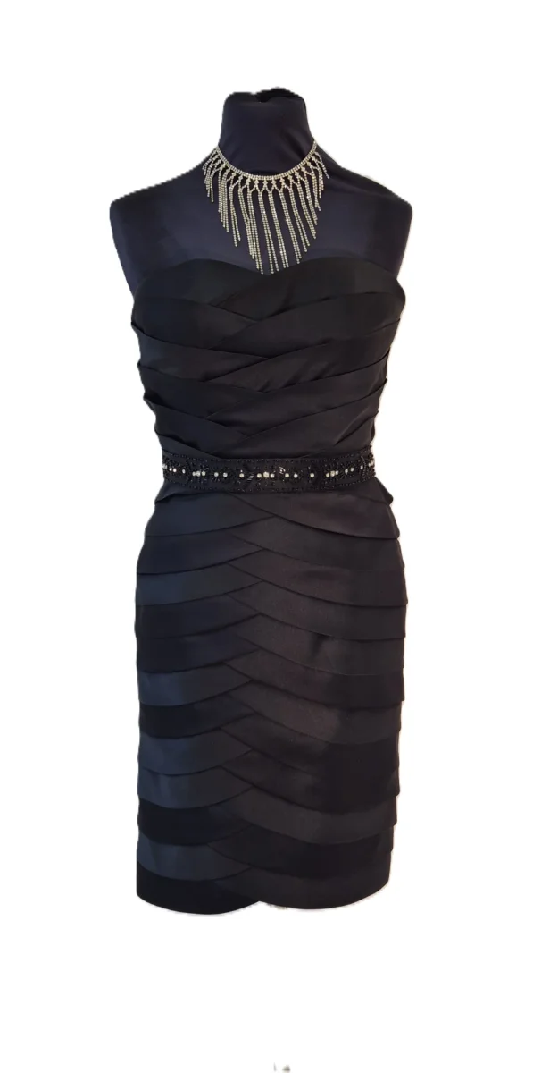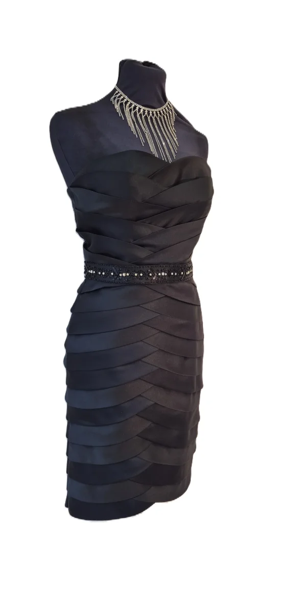 Kort svart draperad klänning i svart med läcker dekor i midjan från Gino Cerruti
