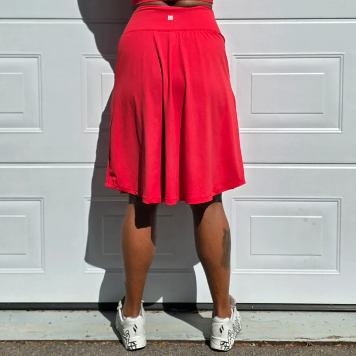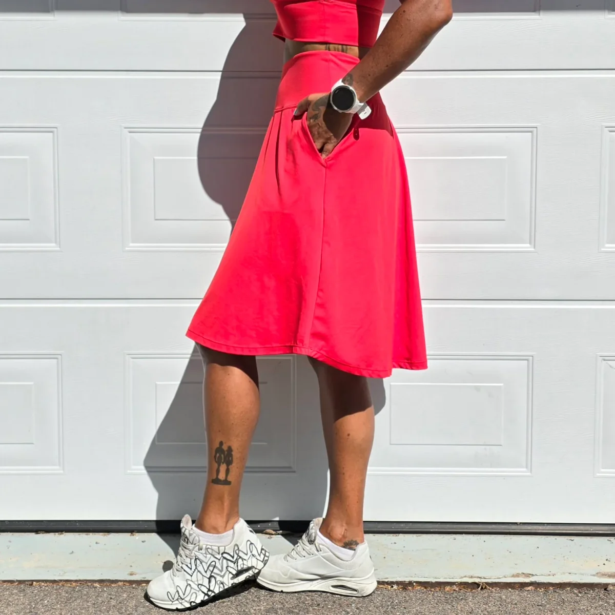 Snygg röd lång byxkjol. Skapad för en skön vardag och en aktiv livsstil. Den här byxkjolen har två vanliga handfickor på utsidan för förvaring av nycklar, mobil och exempelvis bollar och andra tillbehör om du spelar golf. Den har hög midja och två mobilfickor på innershortsen. Innershortsens storlek är uppdaterad för en bättre passform. Kjolen är skapad för en aktiv livsstil och passar lika bra för vardag, golf och fest. Hitta din storlek HÄR .