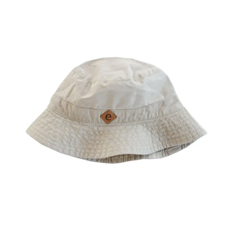 Solhatt till barn och baby i trendig khaki-färg. Tillverkad i mjukt canvastyg av 100% bomull med en ebbe logo fram i läcker läderimitation. Brättets bredd: 5 cm.
