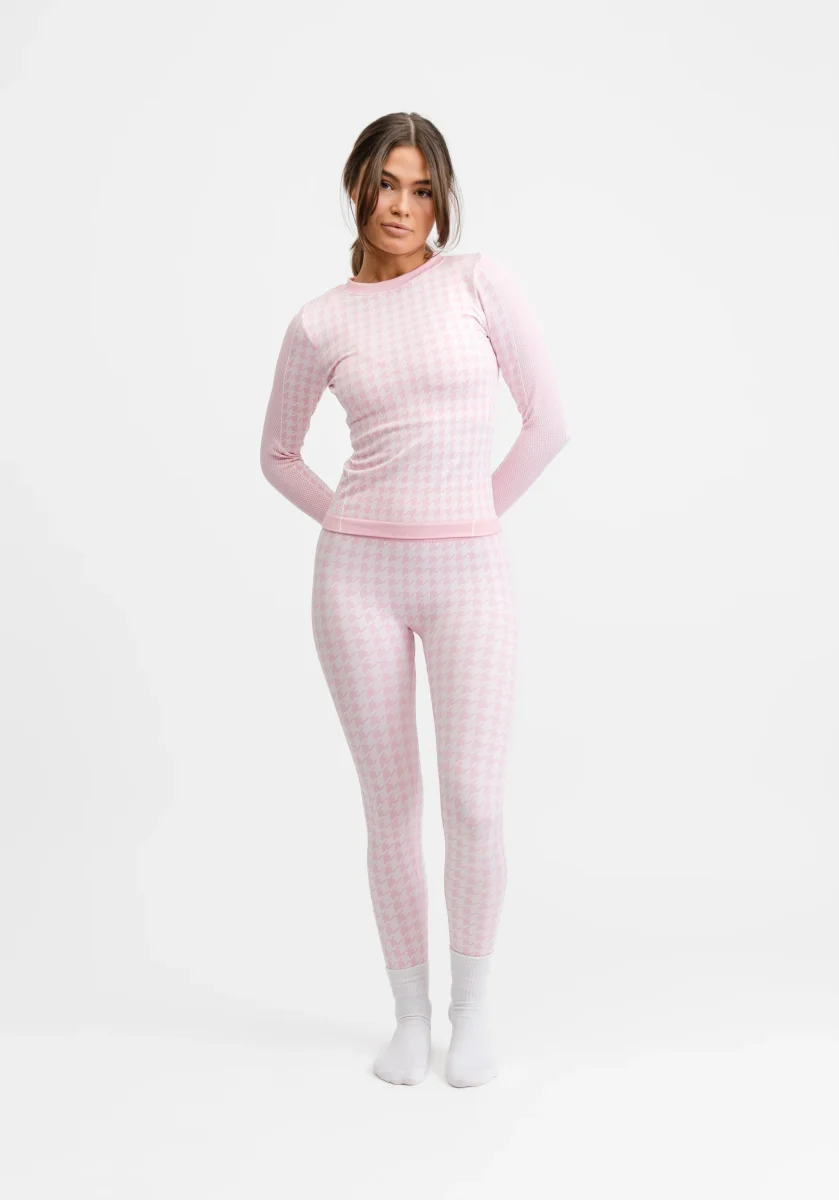 Matcha med vår Seamless Half Zip Base Layer Top i rosa för en komplett och feminin vinteroutfit – perfekt från skidbacken till afterskin.