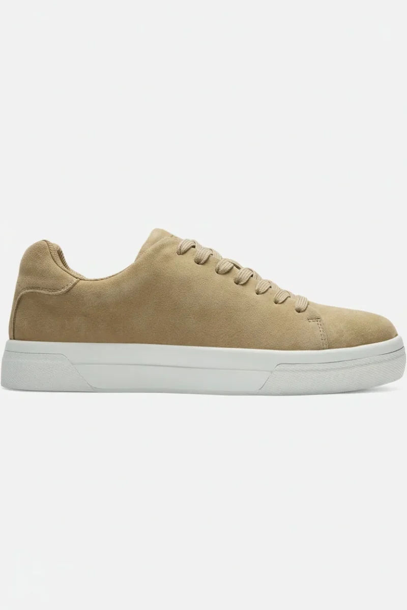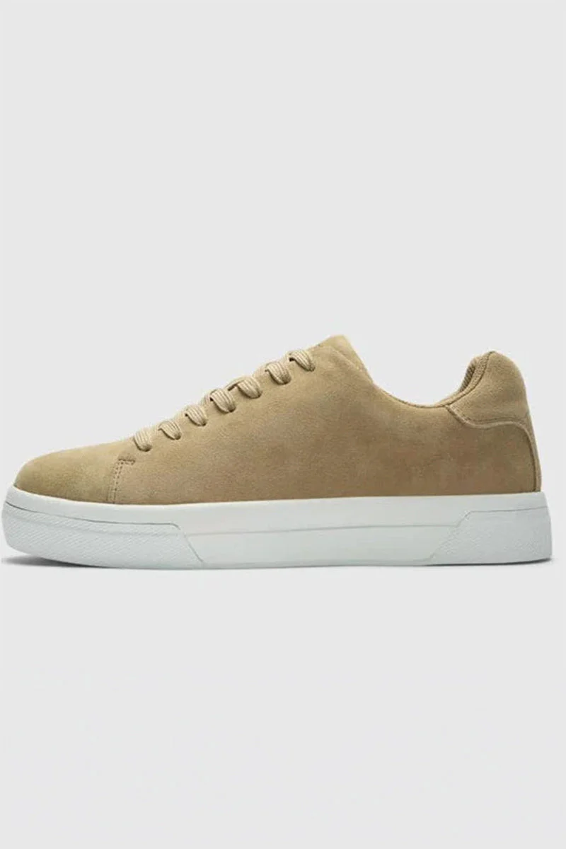 Denna chunky sneaker i mocka är ett tidlöst och bekvämt val för den vardagliga garderoben. Skon har en rund tå och låg klack på 3 cm, vilket tillsammans med snörning ger både stil och passform. Insidan är fodrad med återvunnen polyester som bidrar till en mjuk känsla mot foten, och sulan är tillverkad av en kombination av gummi och eva, vilket ger bra grepp och komfort.