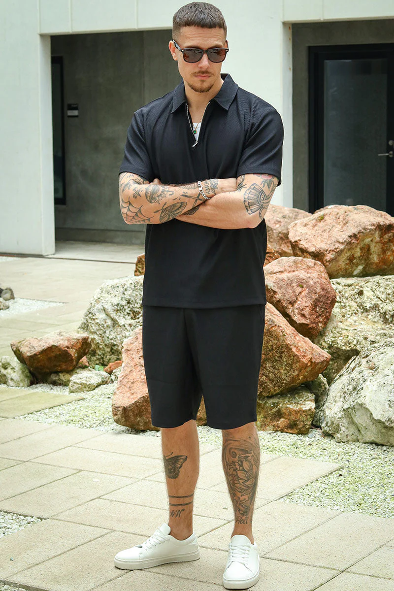 Selected Loose Plisse Shorts Black