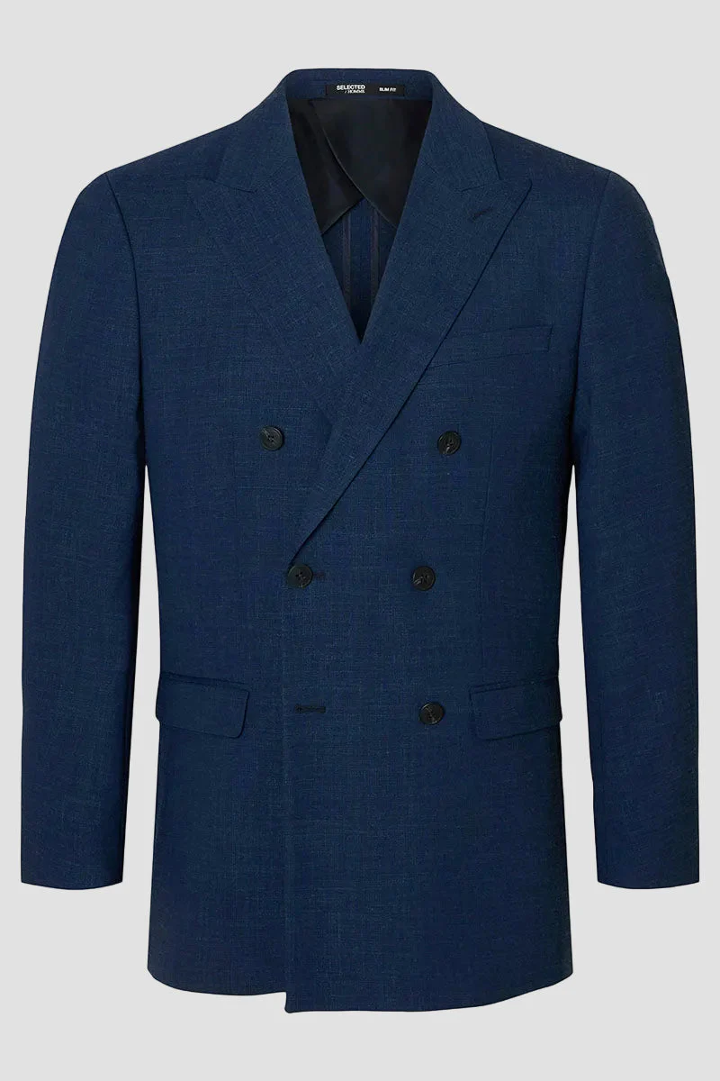 - Mörkblå linnékavaj i slim fit