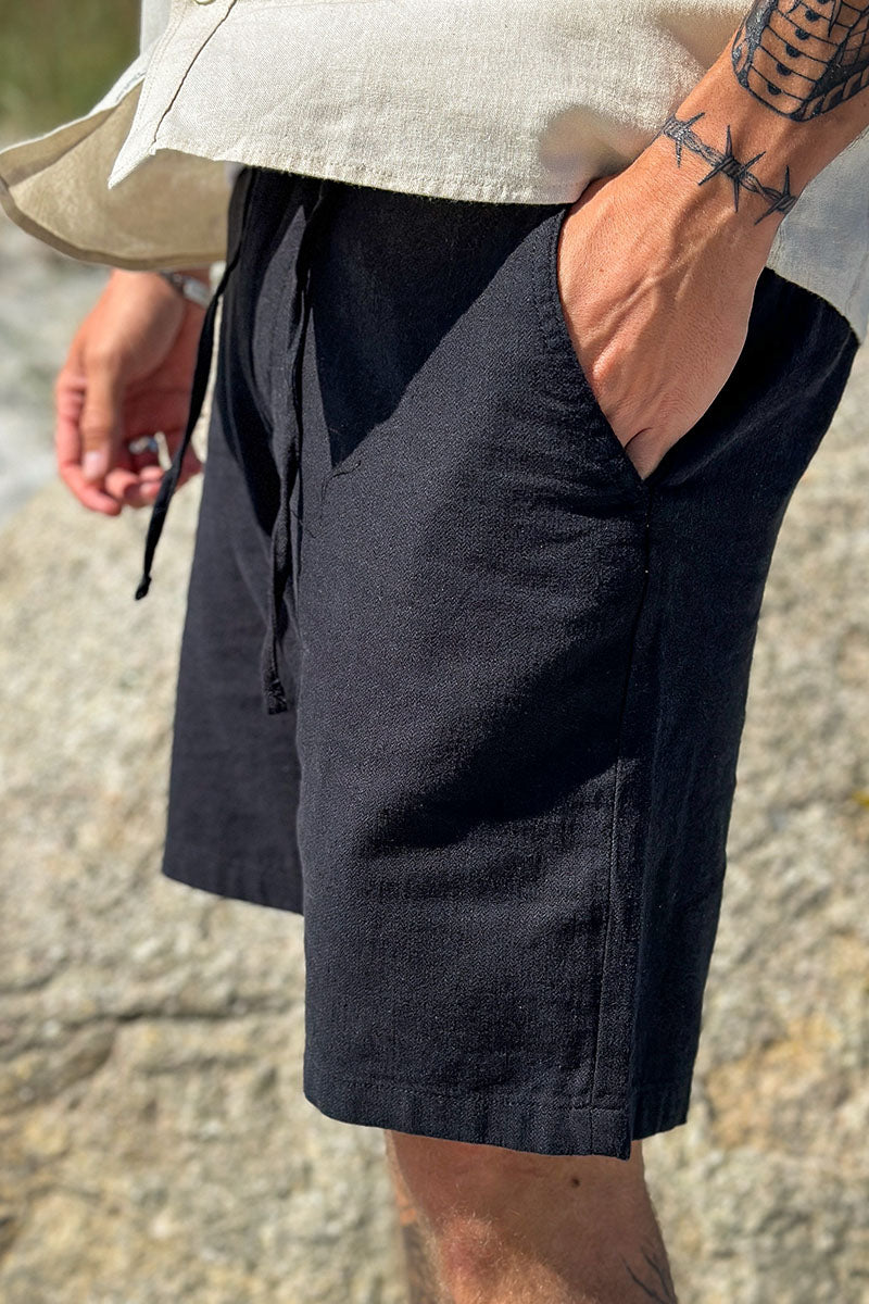 Dessa broderade linne-shorts erbjuder en bekväm och stilren passform med midjeresning och en justerbar dragsko i midjan för personlig anpassning. De är sydda i ett vävt material som kombinerar 54 % ekologisk bomull med 45 % linne och 1 % elastan, vilket ger både hållbarhet och lätthet – perfekt för våren och sommarens varmare dagar.