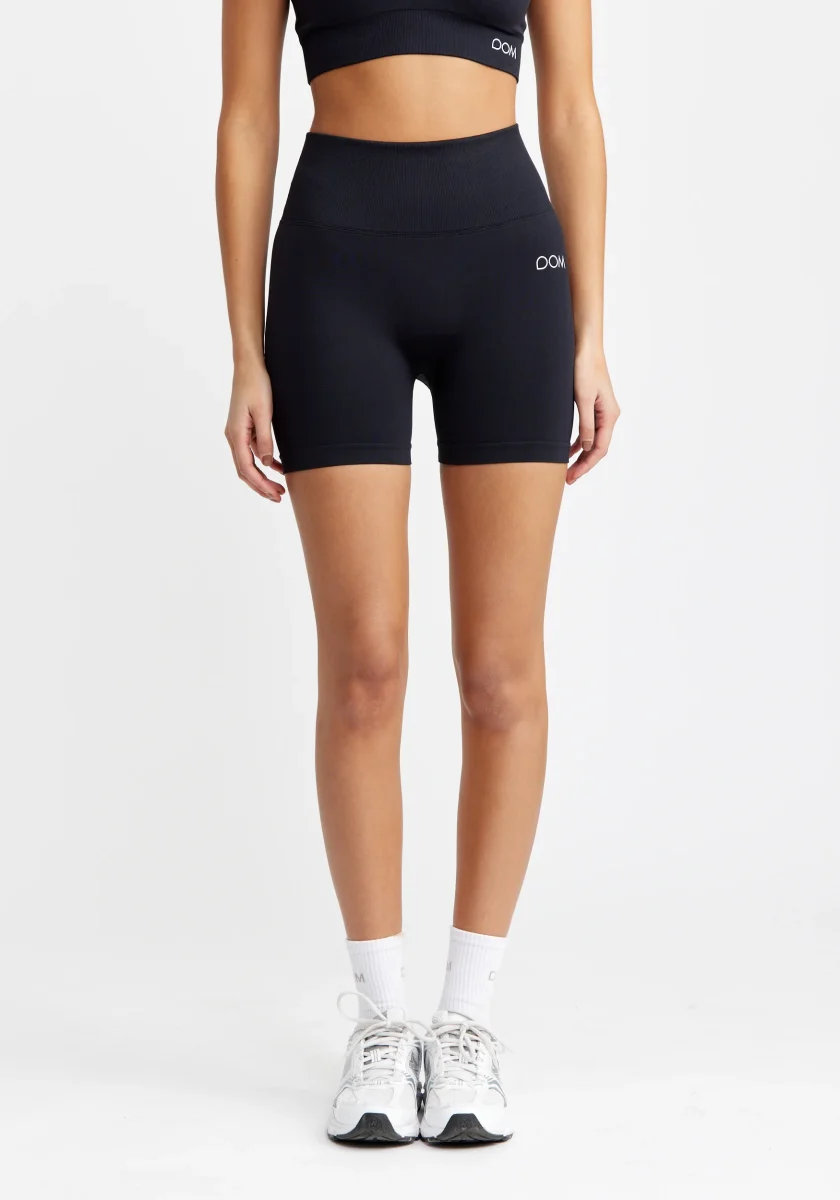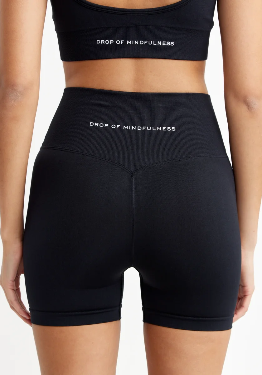 Svarta Sesh Bike Shorts – Inspirerade av våra bästsäljande Sesh tights erbjuder dessa shorts både stil och komfort. Den höga, bredare midjan ger extra stöd, medan den smickrande V-formen baktill skapar en elegant siluett.
