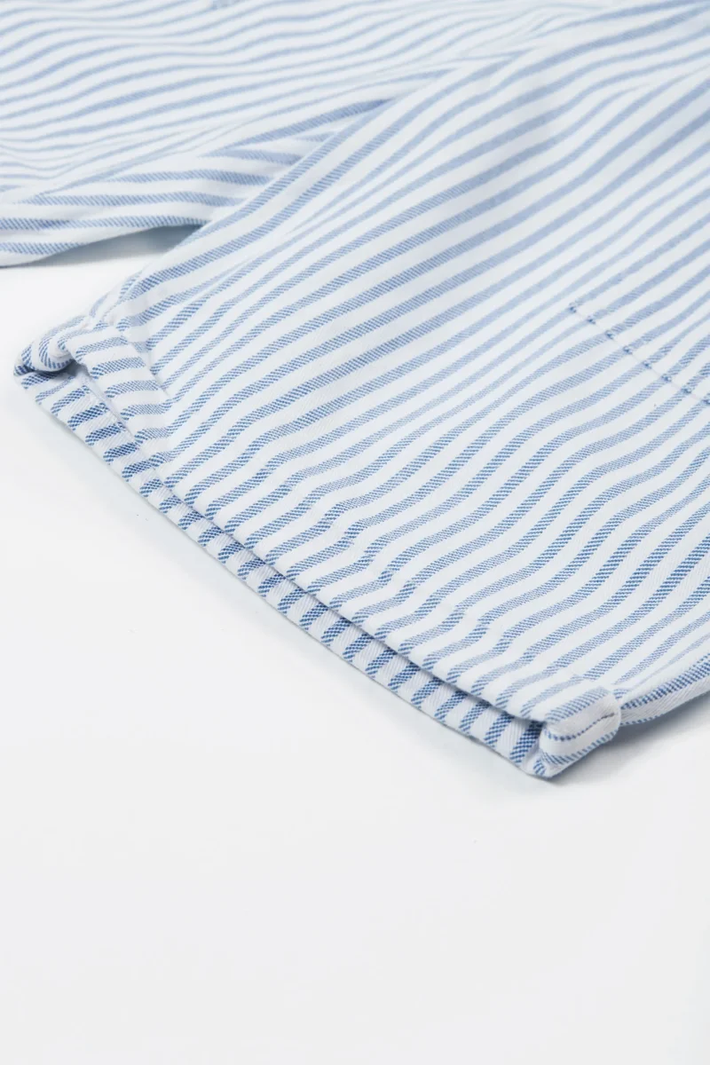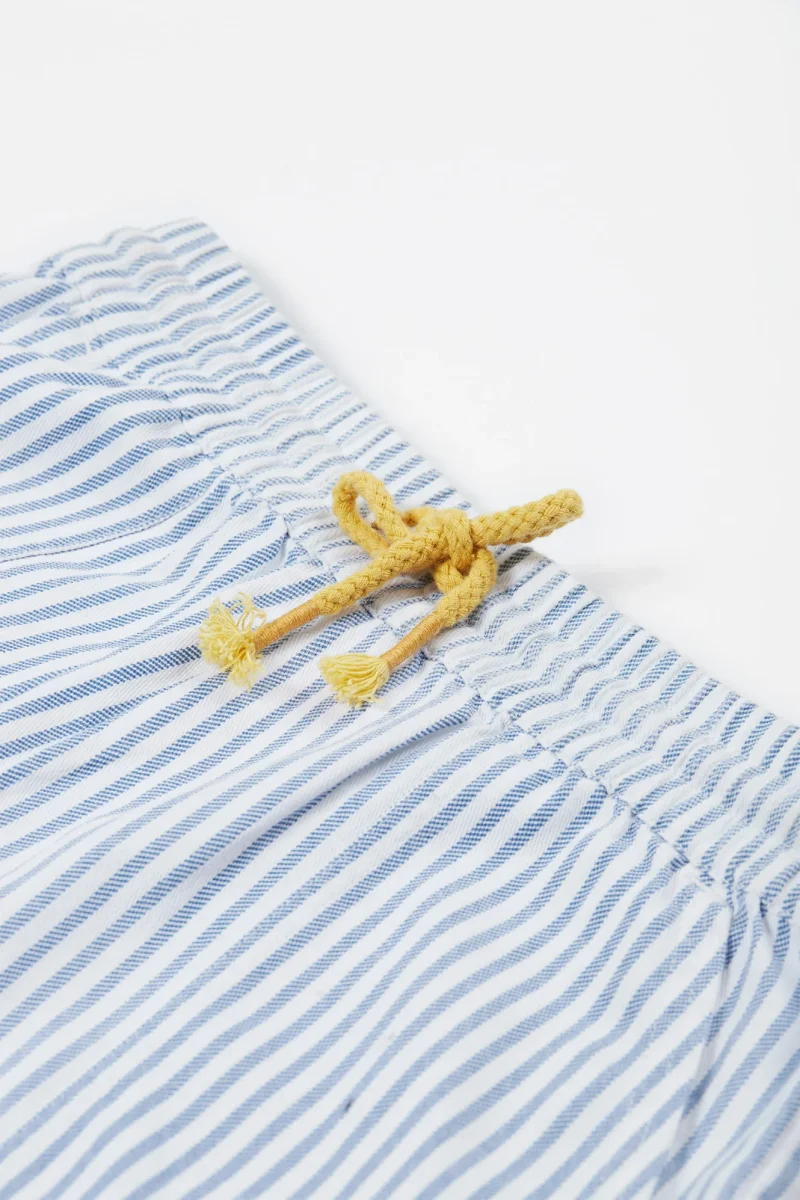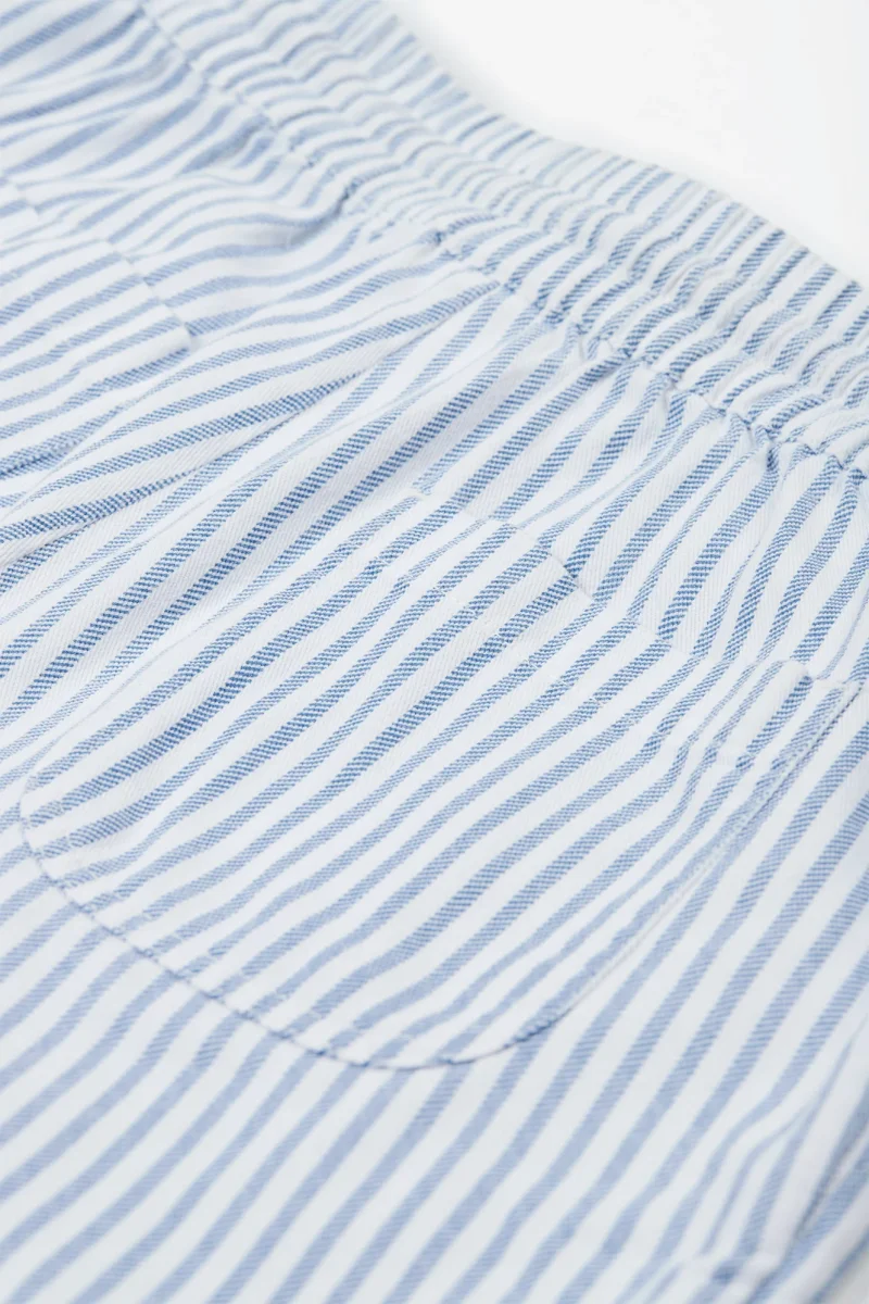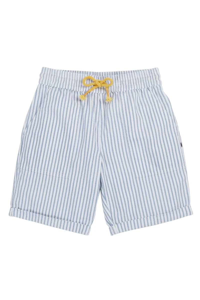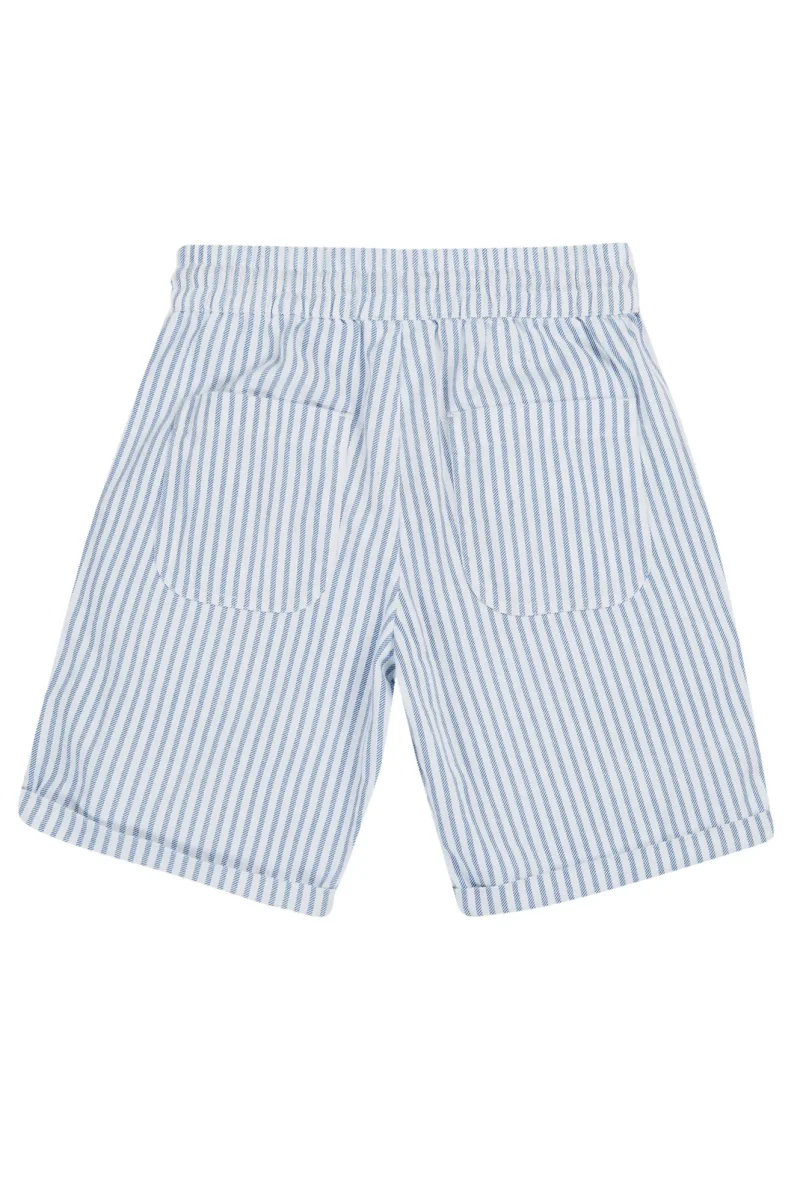Snygga och användbara shorts för barn i randig ekologisk bomullstwill. Mjuk resår och dragsko i midjan och fickor fram och bak. Perfekta för varma dagar!
