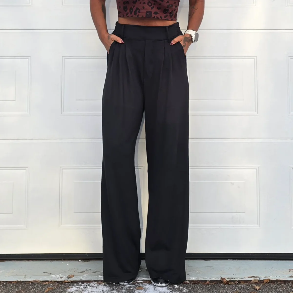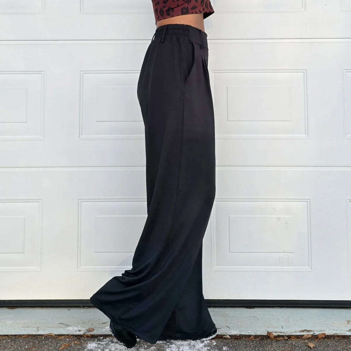 Lyxiga svarta byxor med vida ben och ledig passform. Ser ut som kostymbyxor, men känns som mjukisbyxor. Tillverkade i vår vanliga sköna polyesterblandning. Praktiska öppna fickor på benen. Extra hög midja med bälteshållare. Passar en aktiv livsstil och även perfekt för golfbanan. Långa Sköna Byxor passar personer som är ca 178-183 cm.
