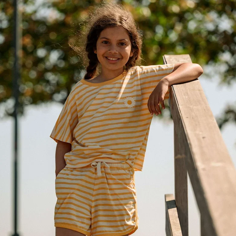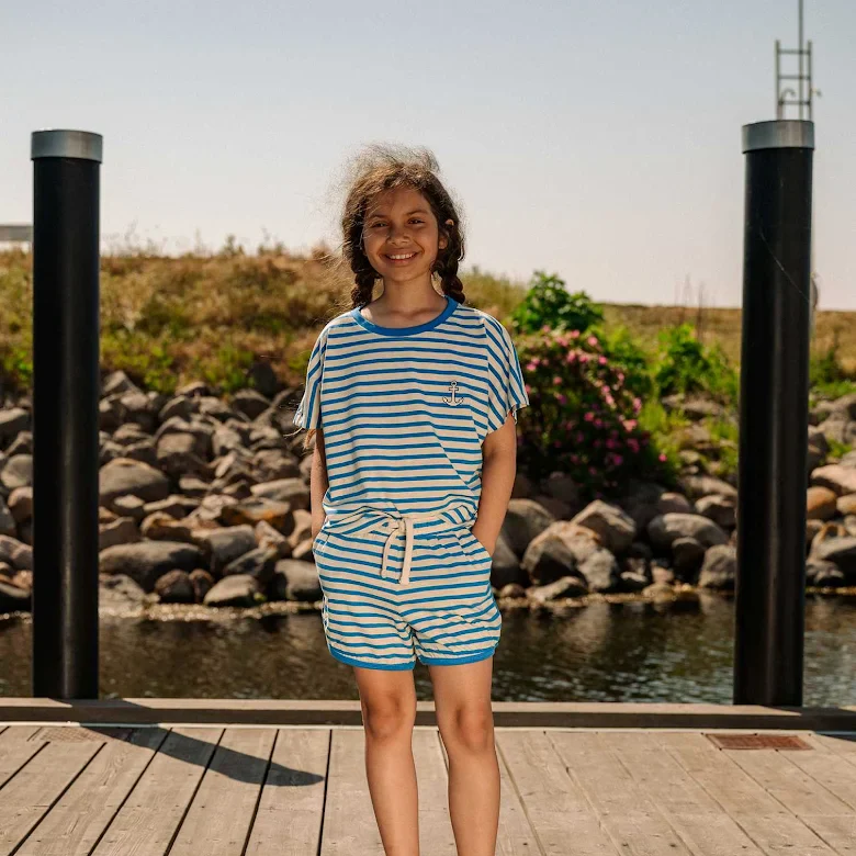 Korta shorts med en snygg och sportig look med klassiskt mörblå ränder. Resår och dragsko i midjan. Litet brodyr på bakfickan. Passar fint till Summer top eller Steven t-shirt.
