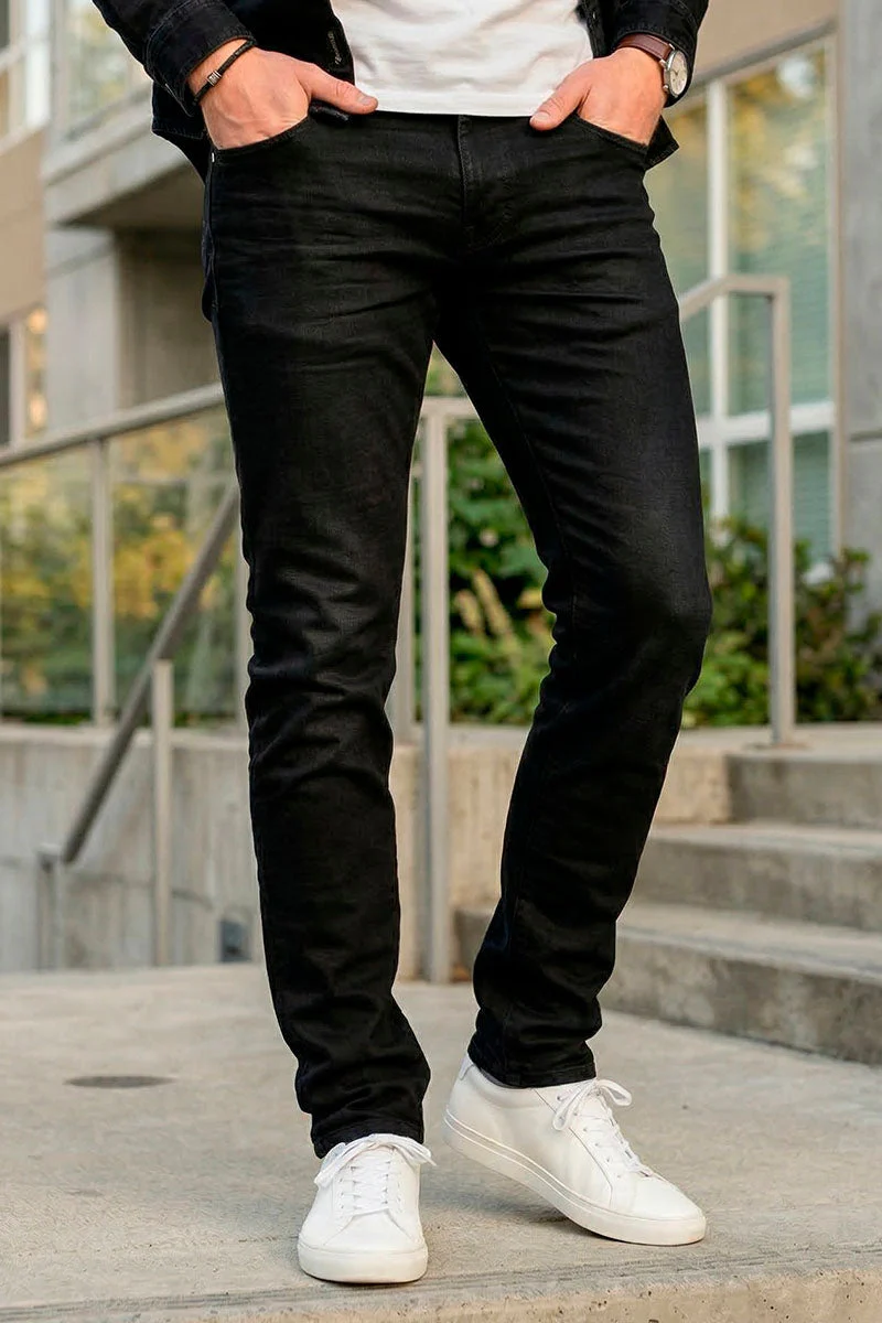 Dessa jeans i svart denim är tillverkade för vuxna män och erbjuder en bekväm och tålig passform tack vare en blandning av bomull, polyester och elastan. Materialet ger plagget en mjuk känsla med en viss stretch, vilket gör dem lämpliga för vardagsbruk. Designade för säsongen NOOS, kombinerar de funktionalitet med ett tidlöst utseende.