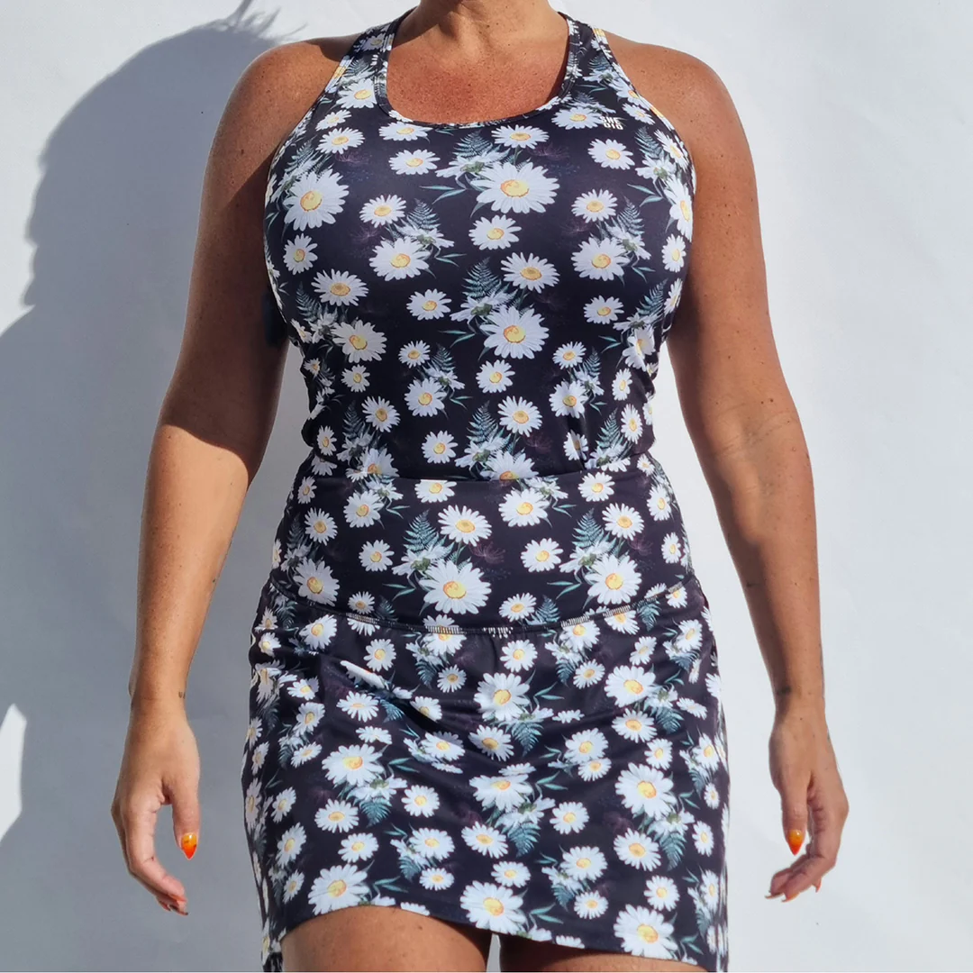 Vårt sommarlinne med svart bas har en mer kroppsnära passform. Den X-formade ryggen ger rörelsefrihet. Den passar all form av träning. Vill du ha en lösare passform, kan du gå uppåt i storlek, vill du ha en tajtare passform, kan du gå nedåt i storlek.