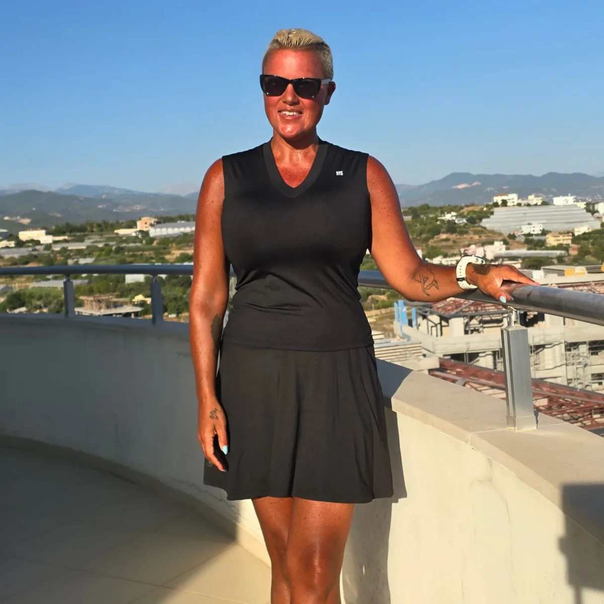 Snyggt svart linne som passar lika bra till vardags som till träning. V-ringad hals som gör den snygg att ha utanpå kjolar och byxor. Fin under kavaj. Passformen är kroppsnära, men vill du ha ett mer lössittande linne kan du gå uppåt i storlek.